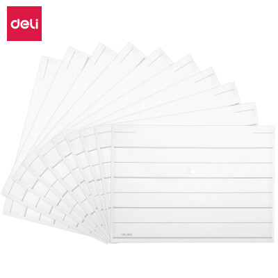 2874 得力(deli)10只A4条纹透明文件袋 按扣资料袋 塑料档案袋 文件保护 票据试卷收纳袋 8313 QL002874 ¥9.3 加入询价