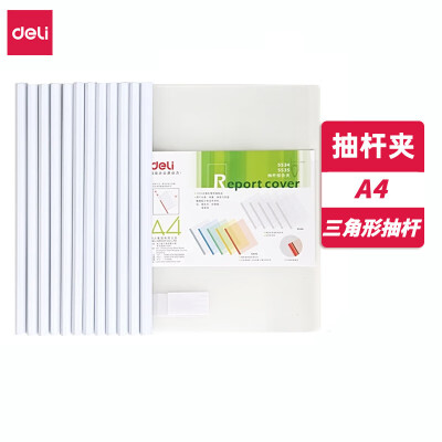 6786 得力(deli)A4背宽6m抽杆夹拉杆资料夹 【6mm 约夹30张】白色水滴杆(10个/包) QL006786 5538 ¥11.9 加入询价