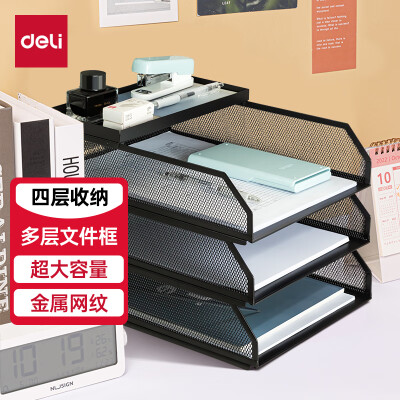 7538 得力文件筐铁资料整理置物架四层黑色PB260 QL007538 待询价 加入询价