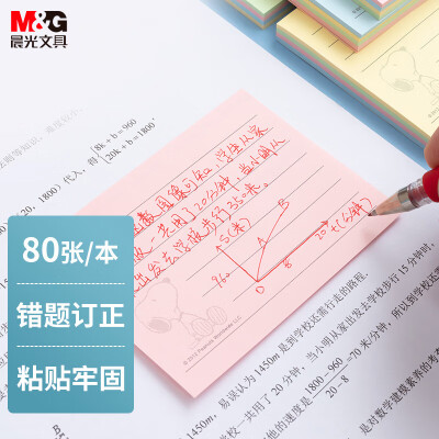 2787 晨光(M&G)文具80张4色便利贴 粘性标签贴留言贴 76*102mm记事贴优事贴便签本子 单本装颜色随机YS-81 QL002787 ¥2.3 加入询价
