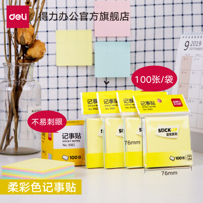 2770 得力(deli) 便利贴 标签纸 便签纸 记事贴 可反复粘撕 9076(76*76mm) QL002770 ¥2 加入询价