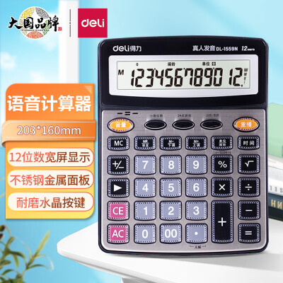 2718 得力(deli)12位金属面板语音计算器 水晶大按键大屏幕财务计算器 办公文具用品 大号 香槟金1559N QL002718 ¥32.5 加入询价