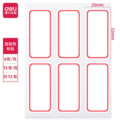 3224 得力(deli)72枚25×53mm不干胶标签贴纸自粘性标贴姓名贴 7182-72 QL003224 ¥1.8 加入询价