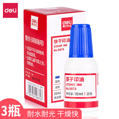 3304 得力(deli)10ml财务印章原子印油 【9873印油/蓝色】 QL003304 9873 20瓶/盒 ¥2.8 加入询价