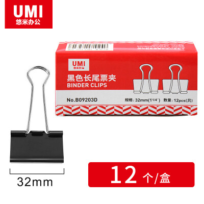 3495 悠米 长尾票夹B09203D(32mm)黑色 12只/盒 QL003495 B09203D 12只/盒,12盒/中箱,120盒/大箱 ¥3.4 加入询价