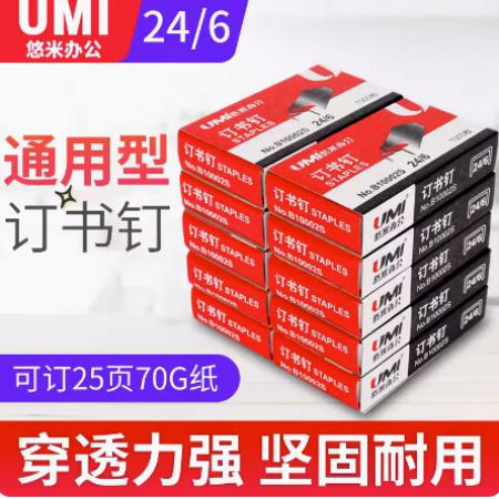 3508 悠米 统一订书针B10002S银24/6 12号(订25张) QL003508 B10002S 1000枚/盒,10盒/中箱,500盒/大箱 ¥1.5 加入询价