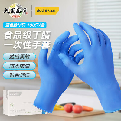 4032 得力(deli) 一次性丁腈手套食物级劳保餐饮工业清洁高弹性 DL521301M蓝色 QL004032 100只/盒 ¥47 加入询价
