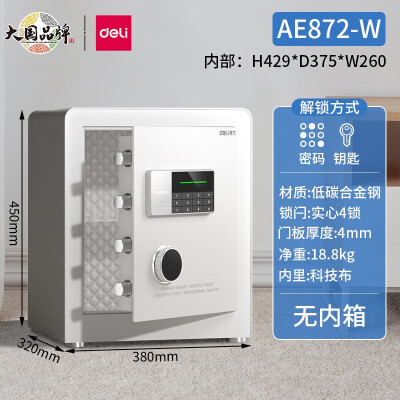 3561 得力(deli)电子密码保险柜 小型保险箱全钢智能防盗保管箱 【高45cm】钥匙/密码 白色 QL003561 ¥650 加入询价