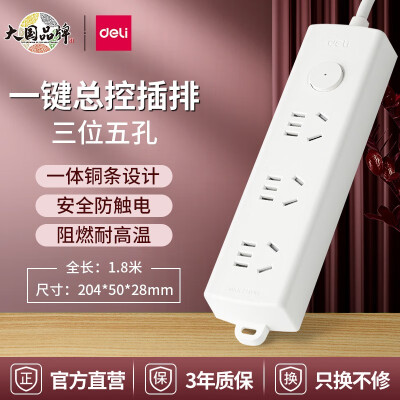 3602 得力(deli)插座 拖接线板 电插板 带线1.8米 3插位总控LX122 QL003602 ¥28 加入询价