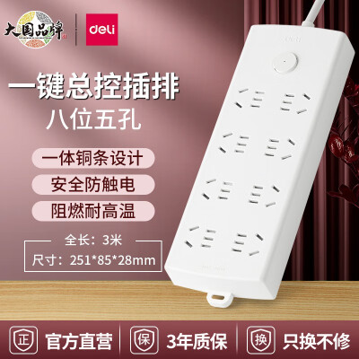 3863 得力(deli)插座多孔插排长线多用功能插板 8插位总控LX126-3米 QL003863 ¥40.9 加入询价