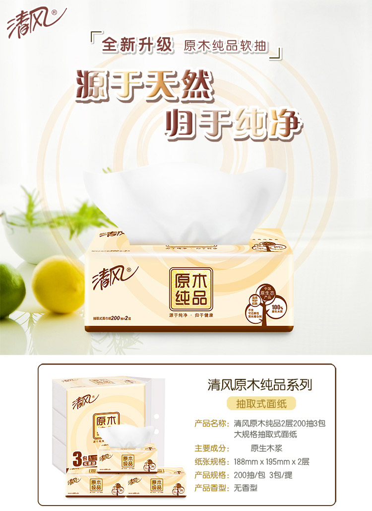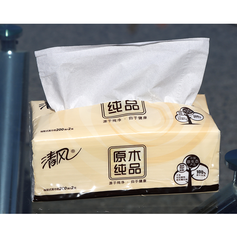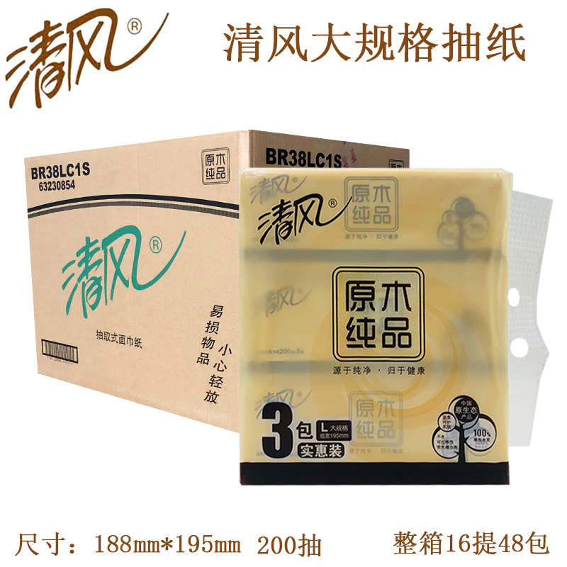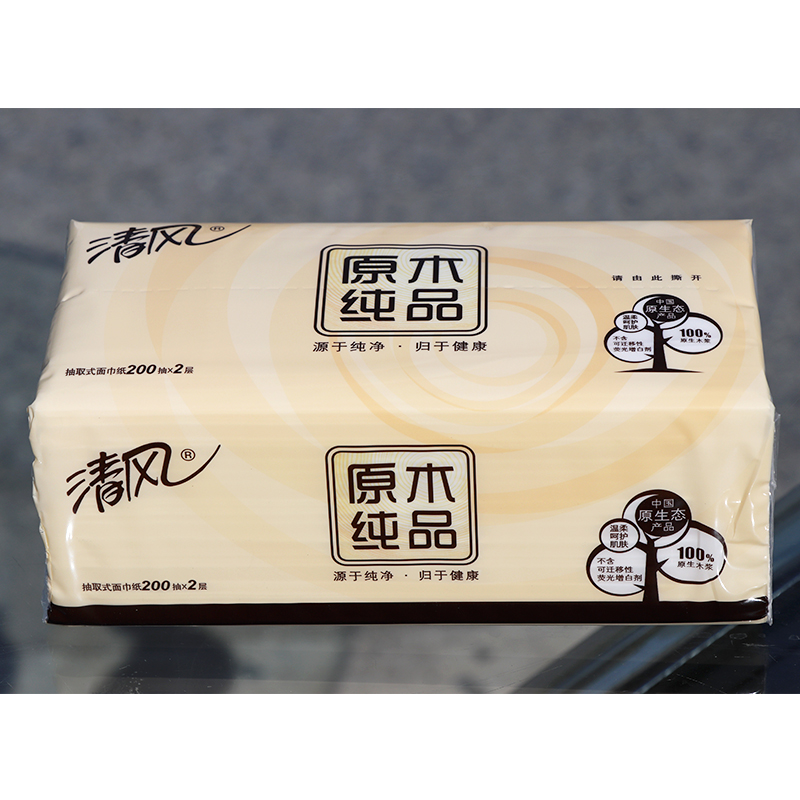 清风BR38LC1S双层原木大规格塑包面纸-200抽