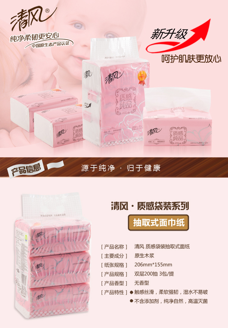 清风BR38XXN9超质感塑包面纸-200抽