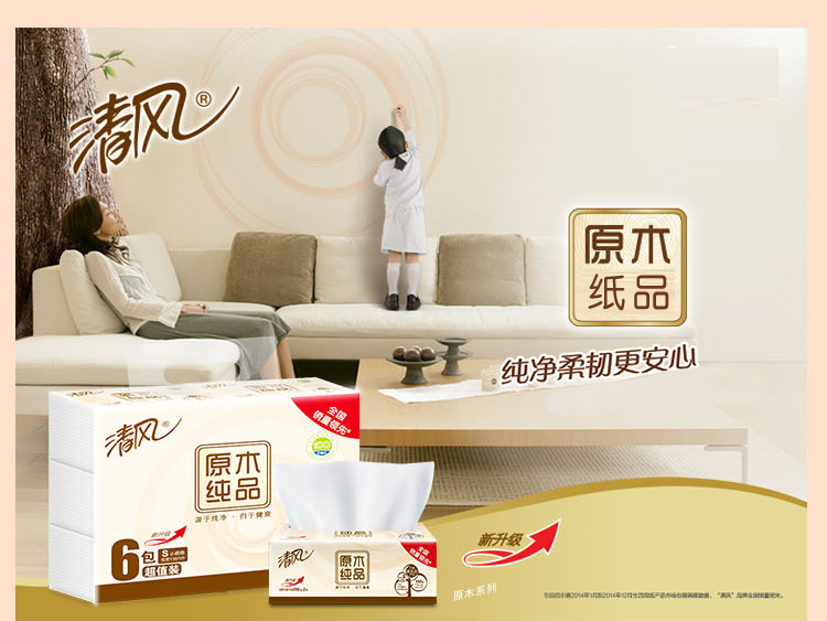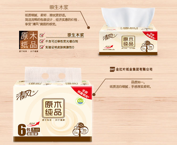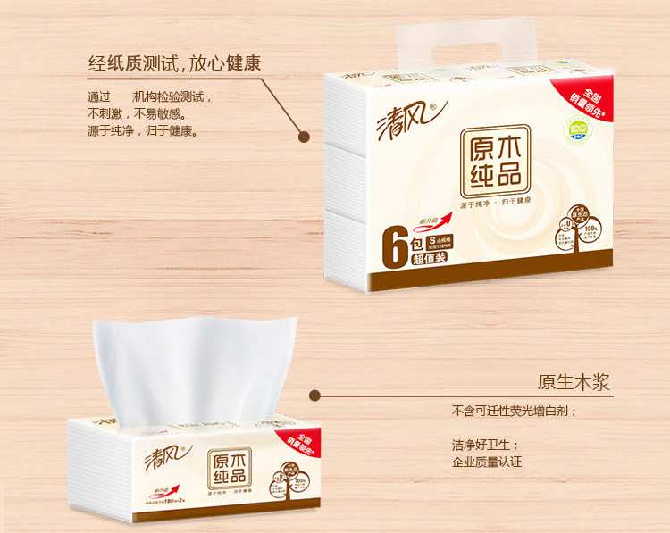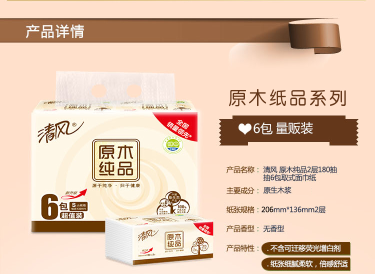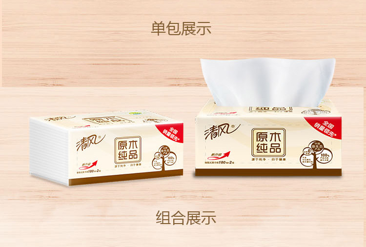 清风BR67SC1/BR67SC3原木纯品塑包面纸-180抽
