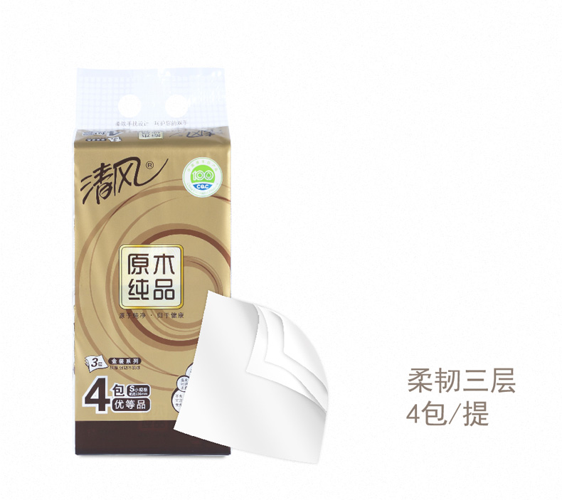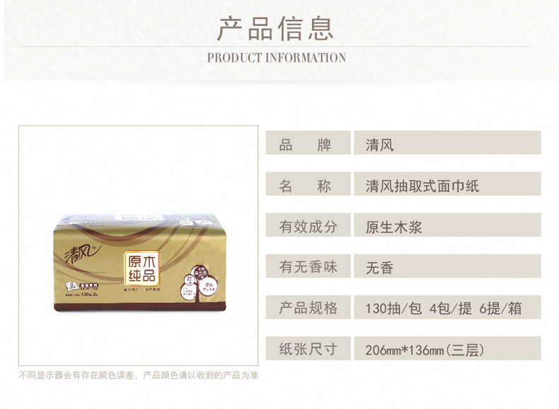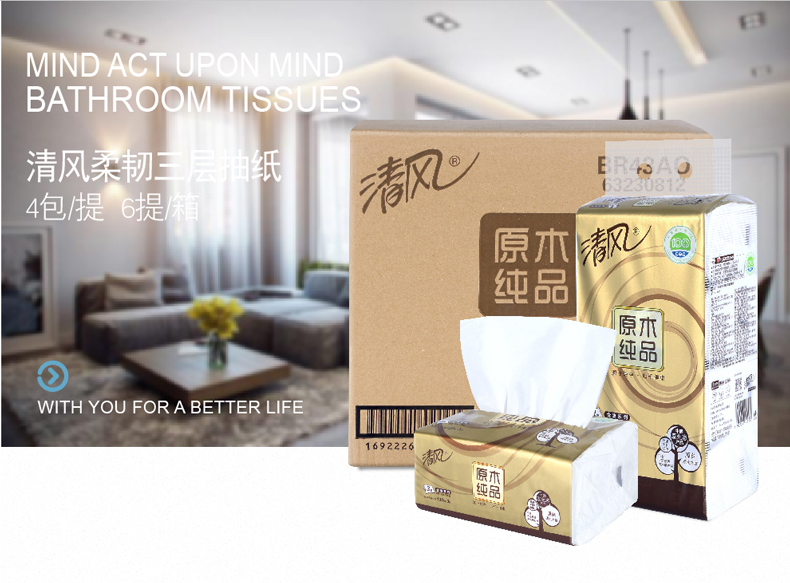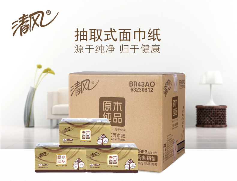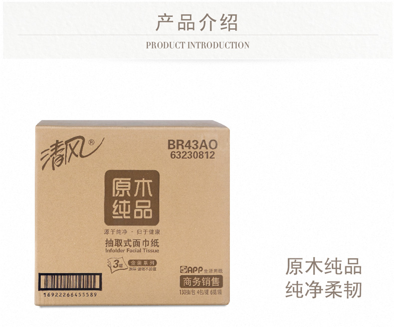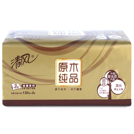 清风BR43AO1三层塑包面纸-130抽 136*206mm,3层,130抽