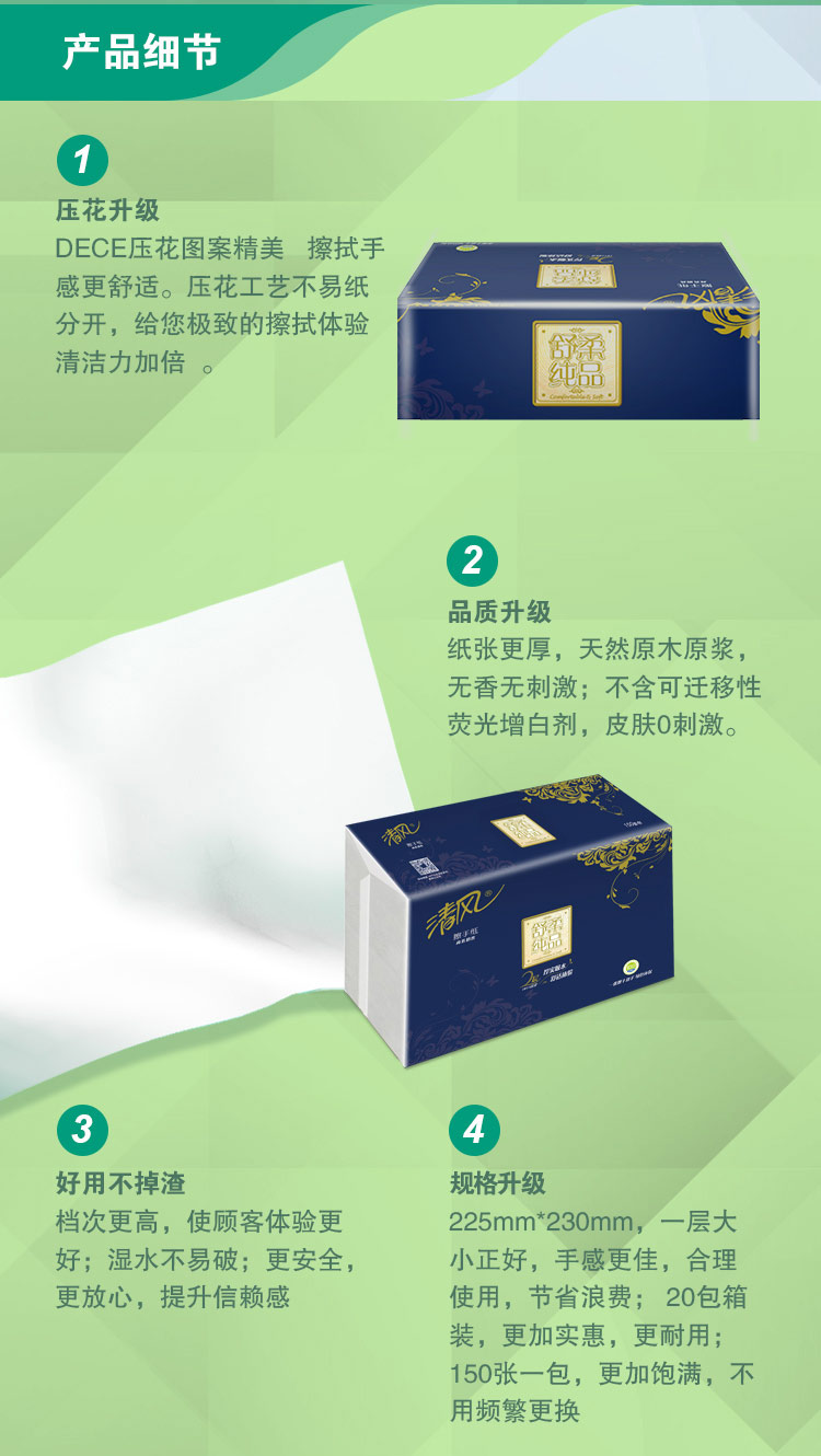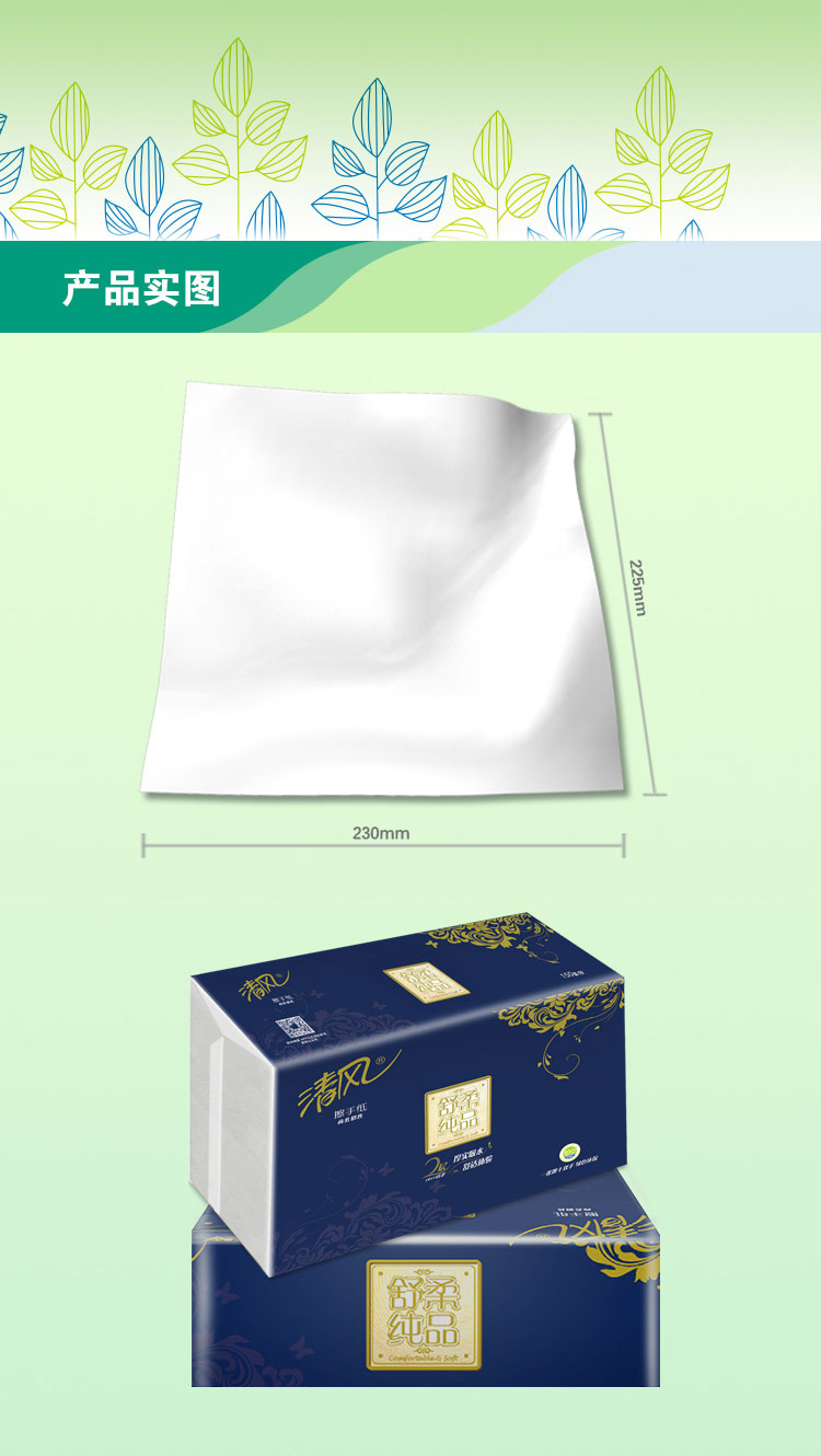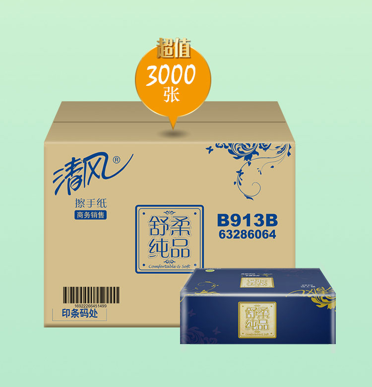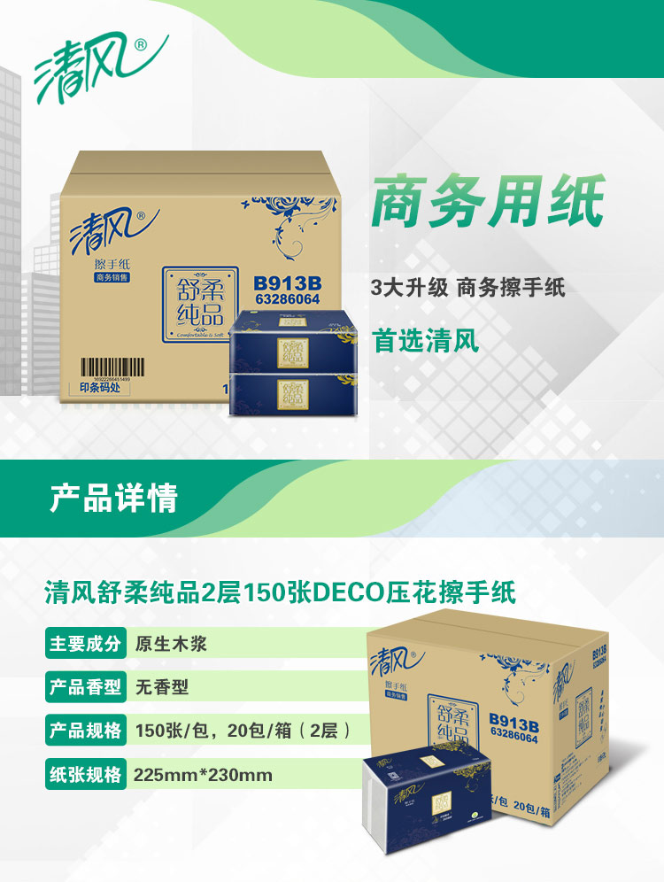 清风B913B双层三折全压花擦手纸-150张 225*230mm,2层