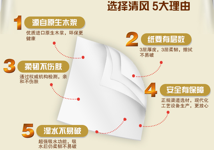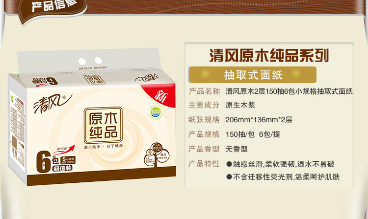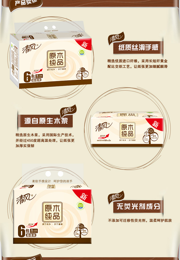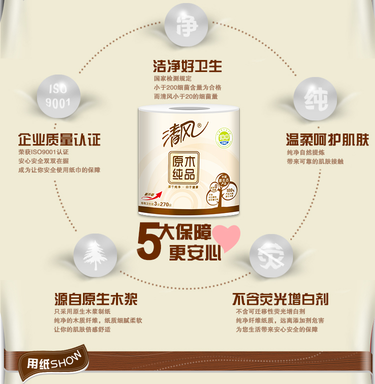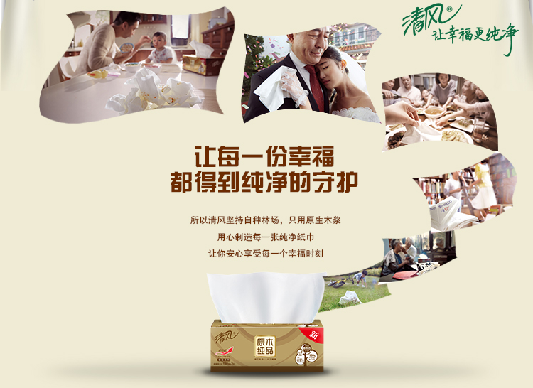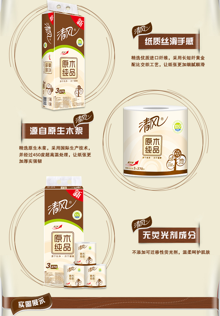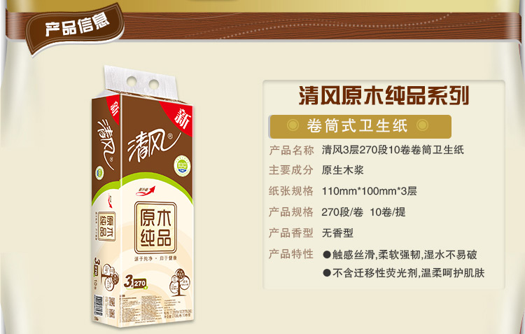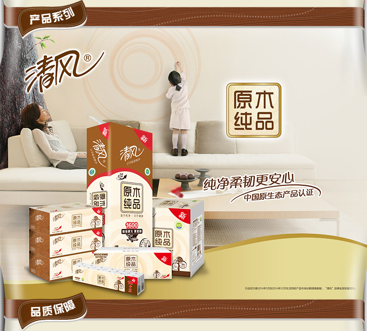 清风B20C4C1三层原木纯品卷筒卫生纸-140克