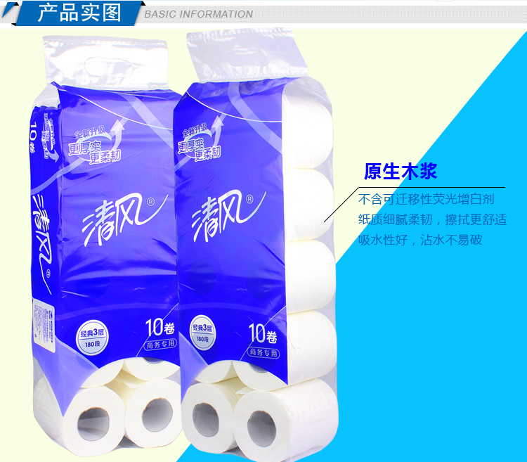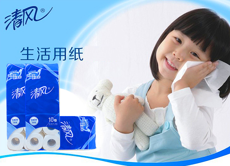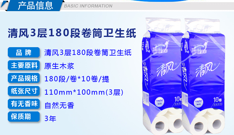 清风B22BA三层平纹卷纸-180段 110*100mm,3层