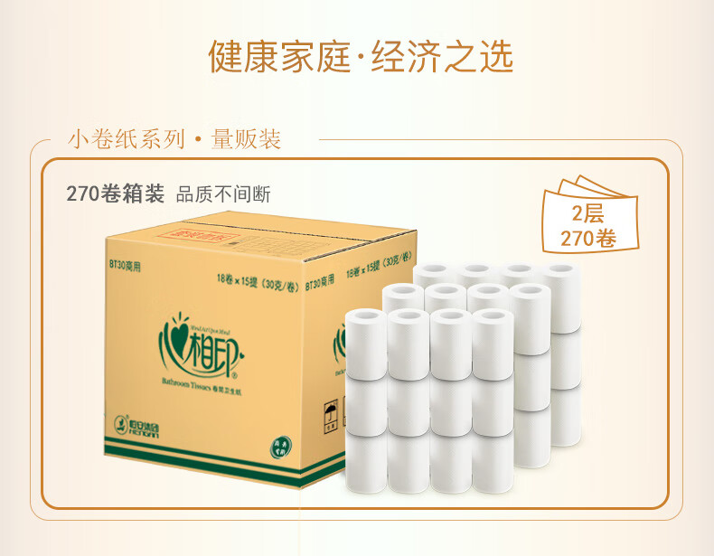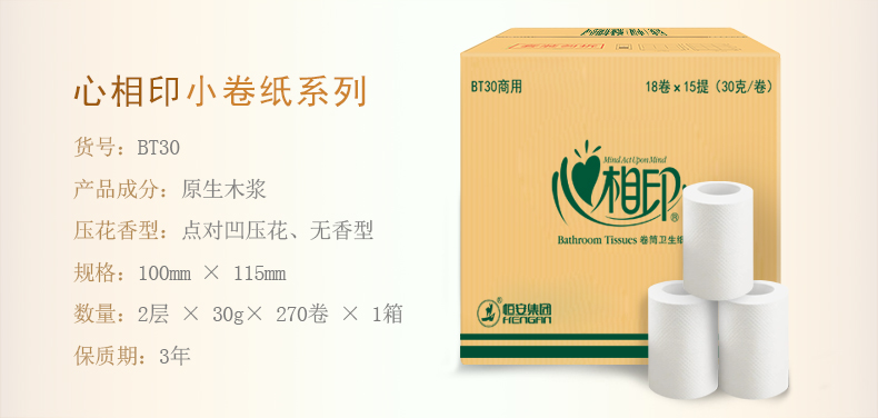 商用-心相印BT30两层小卷纸-30克 110*100mm,2层