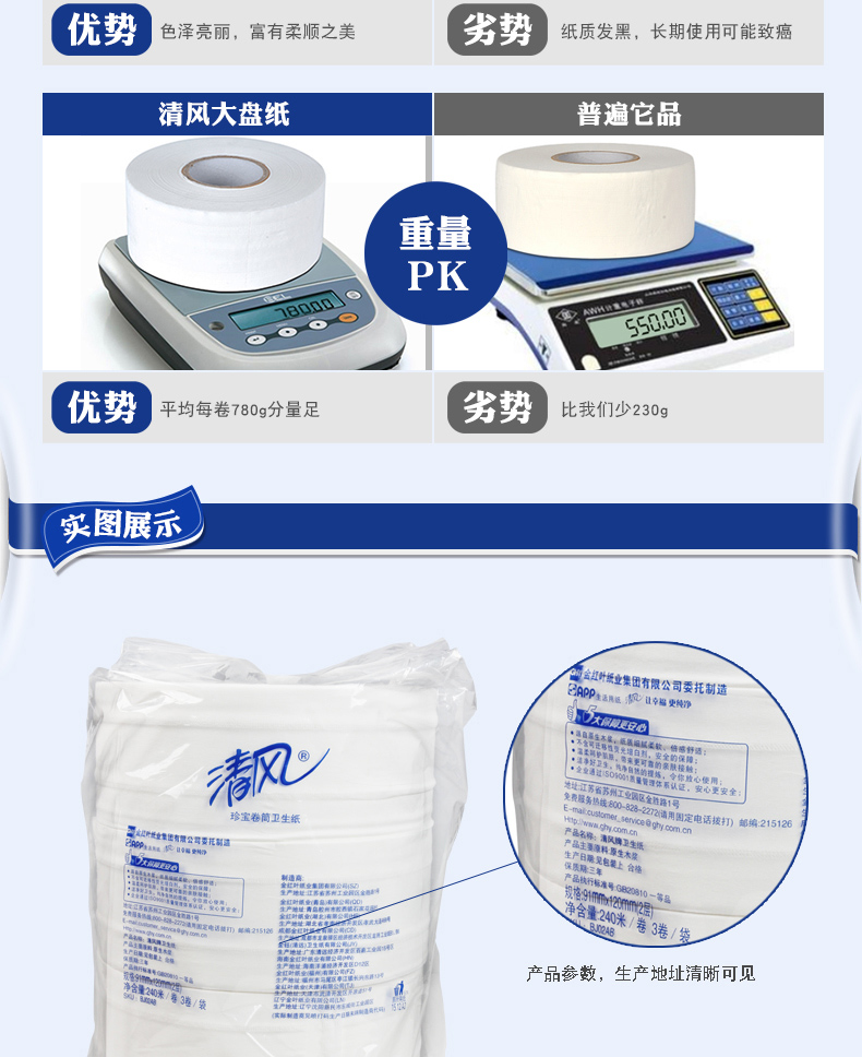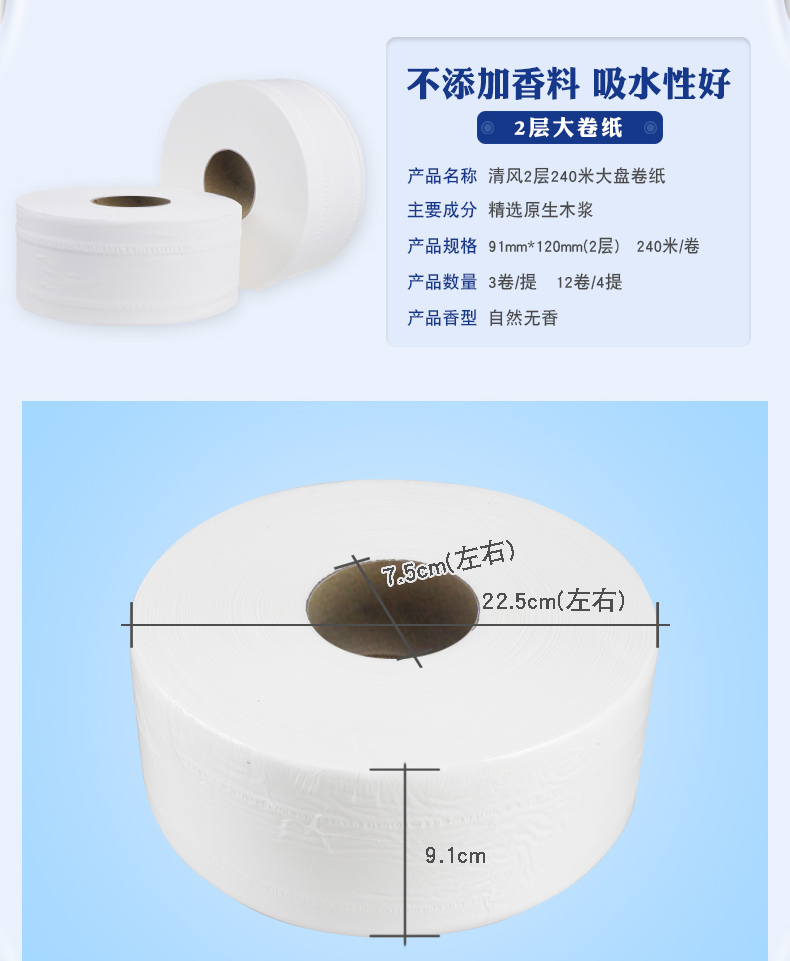 清风 双层大卷纸BJ02AB(91mm×120mm/节12卷/箱
