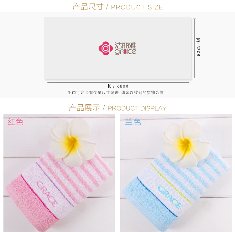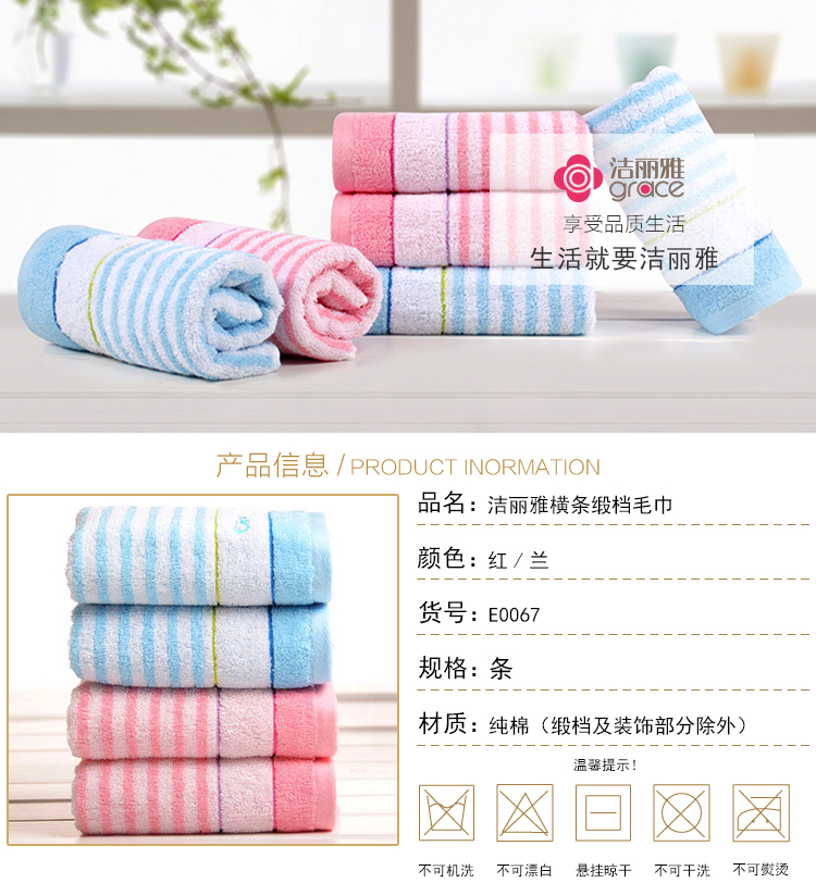 洁丽雅E0067(蓝色)横条缎档面巾68cm*33cm,80g