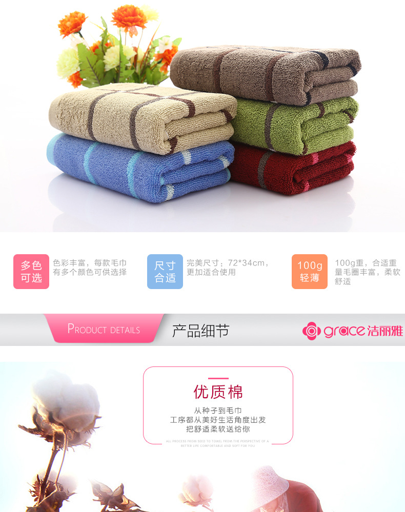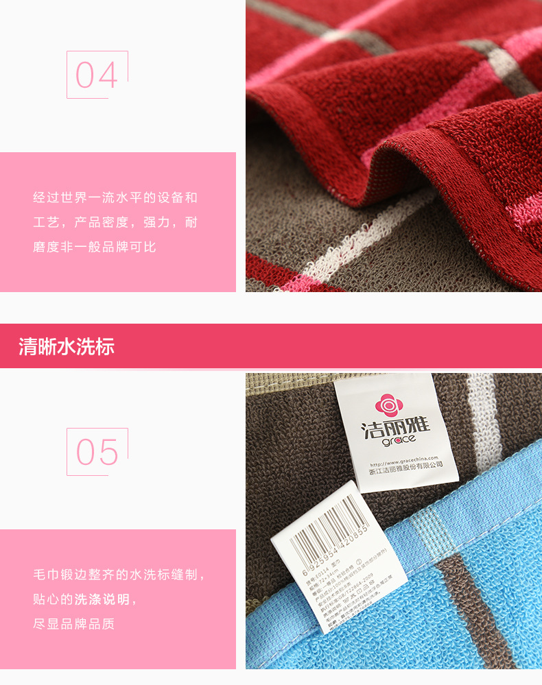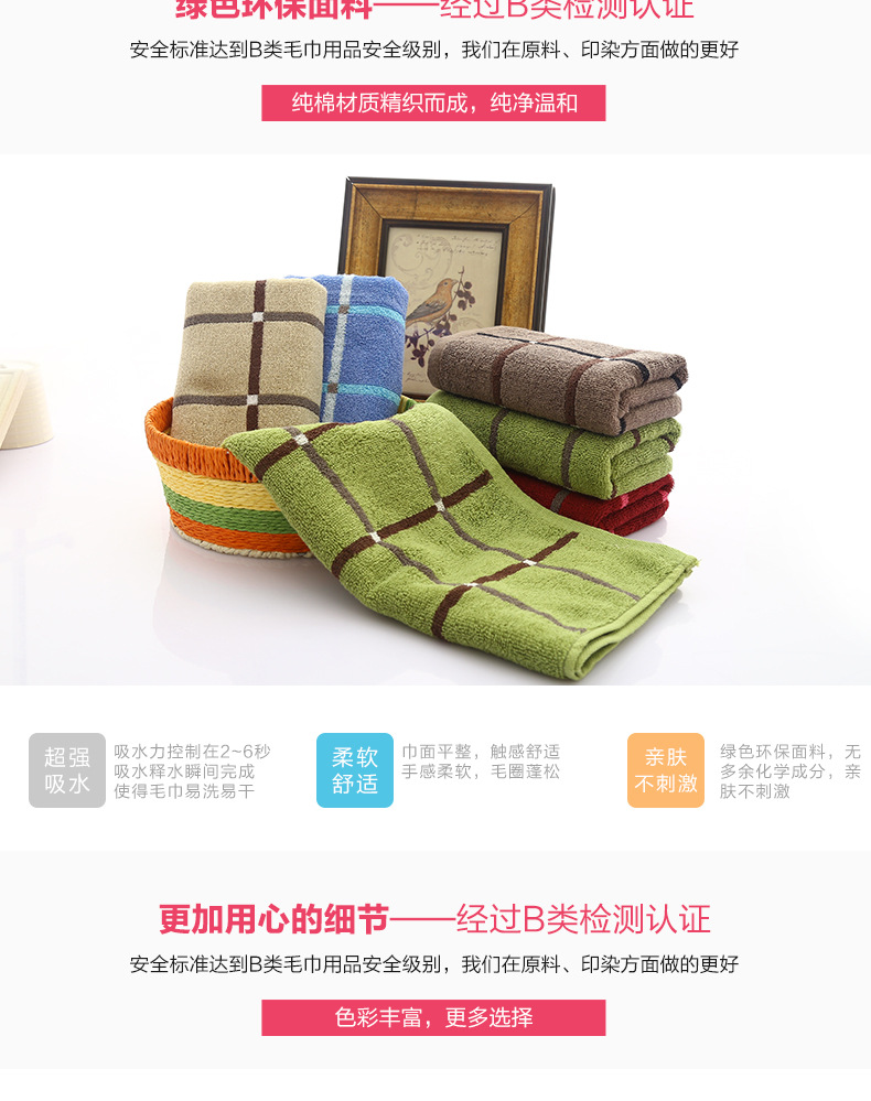 洁丽雅E0114(绿色)多臂方格面巾72cm*34cm,92g