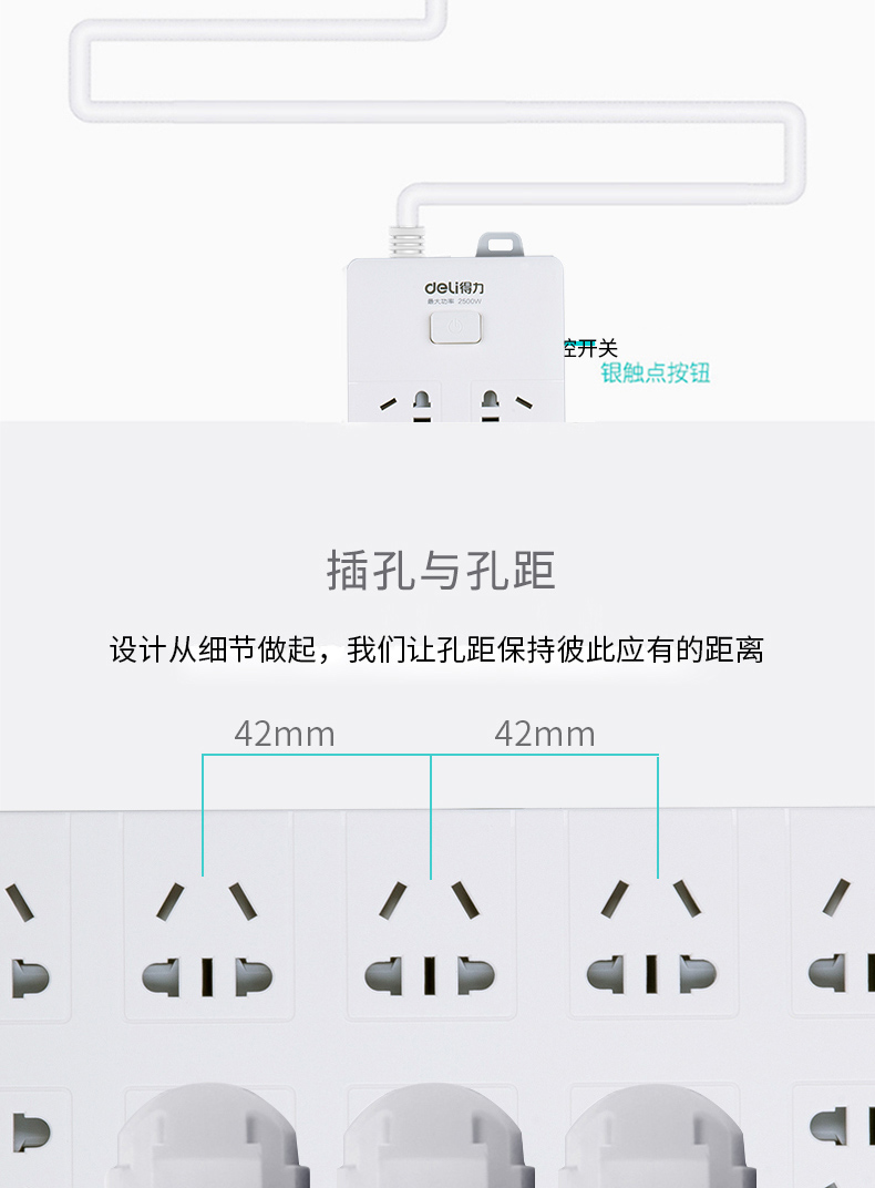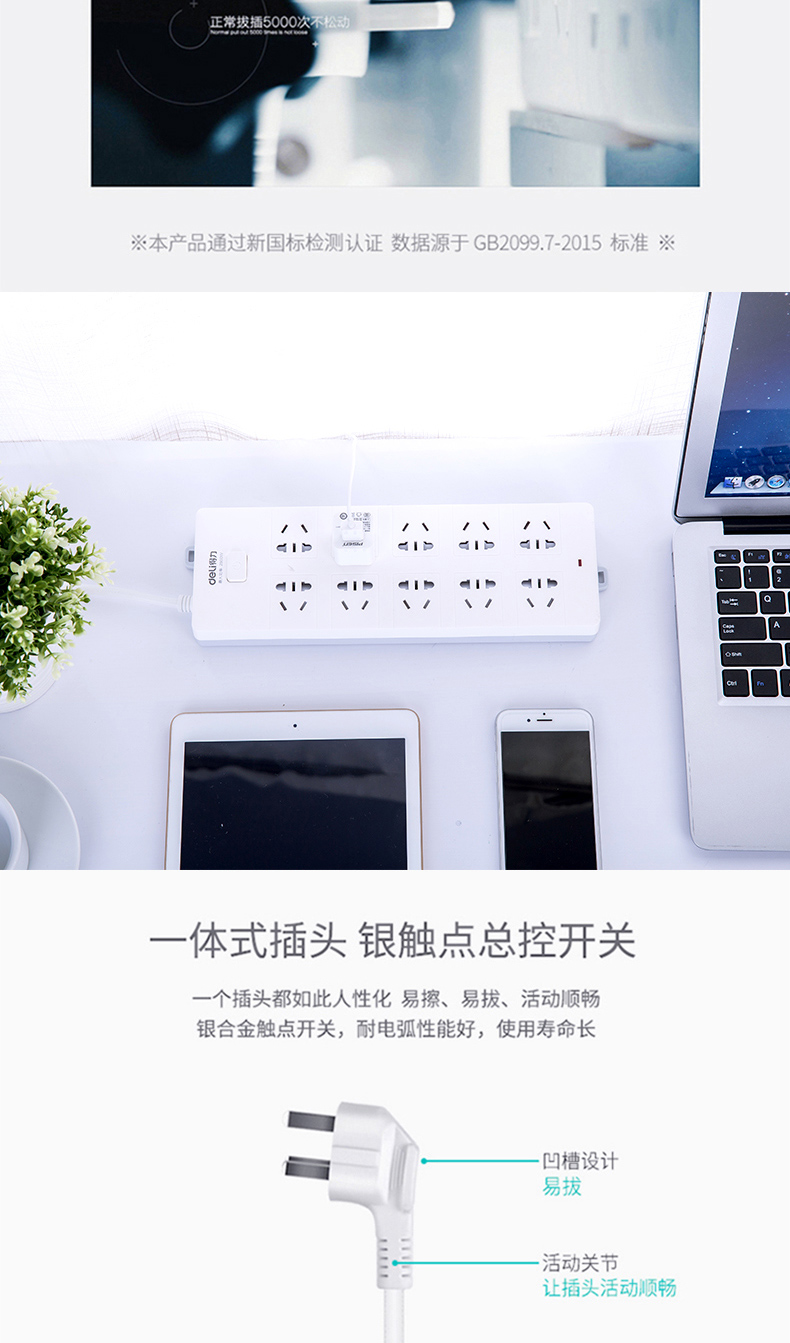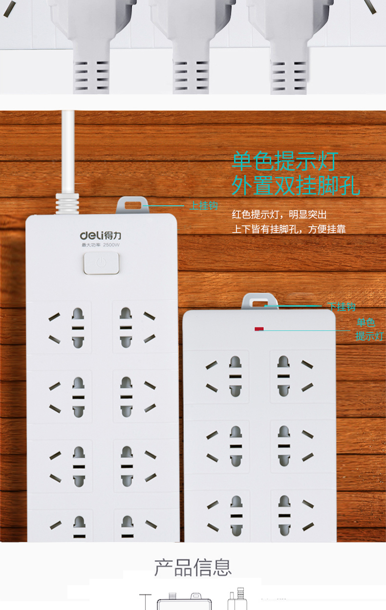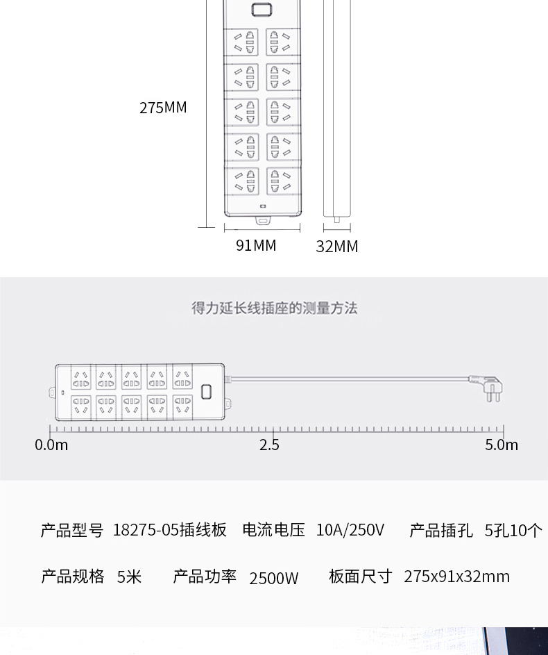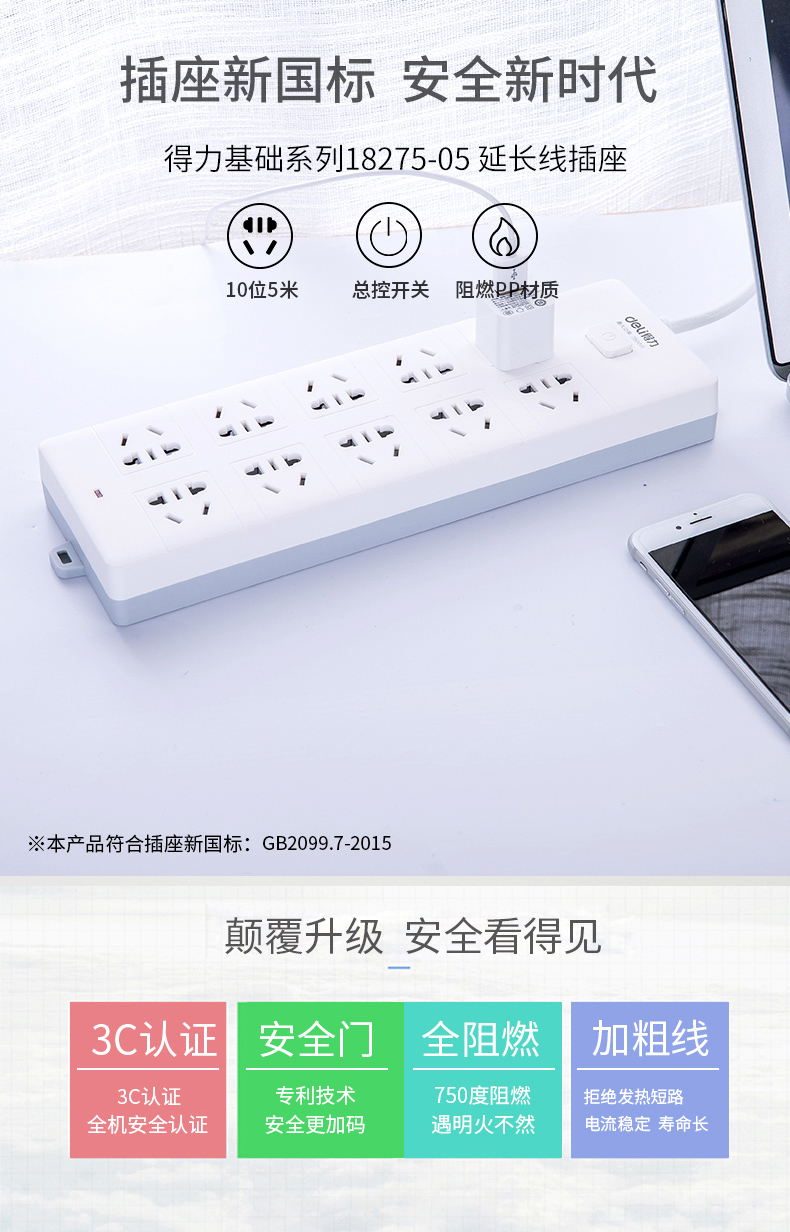 得力18275-05延长线插座(白)