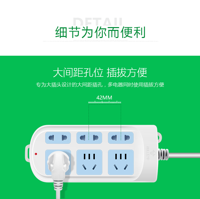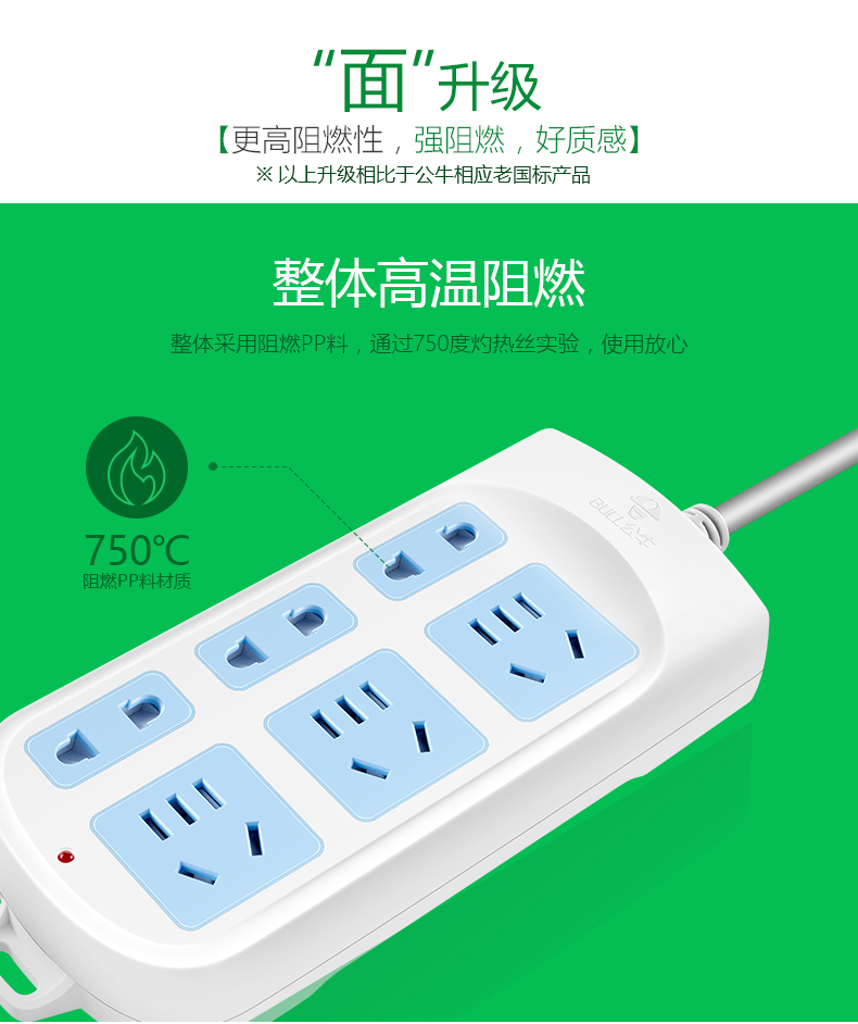 公牛GN-102(新国标)电源插线板 1.8M袋(新老国标混发,老国标产品售完即止)