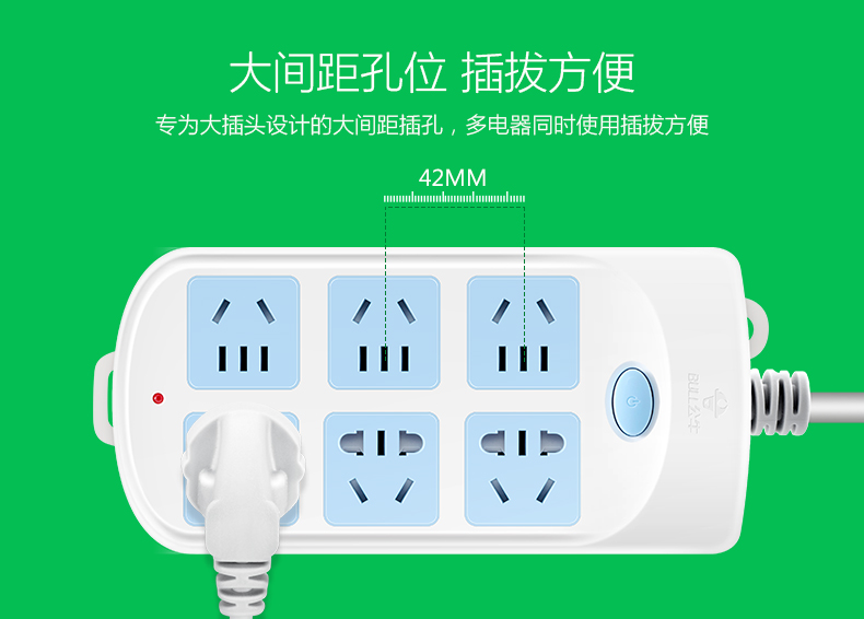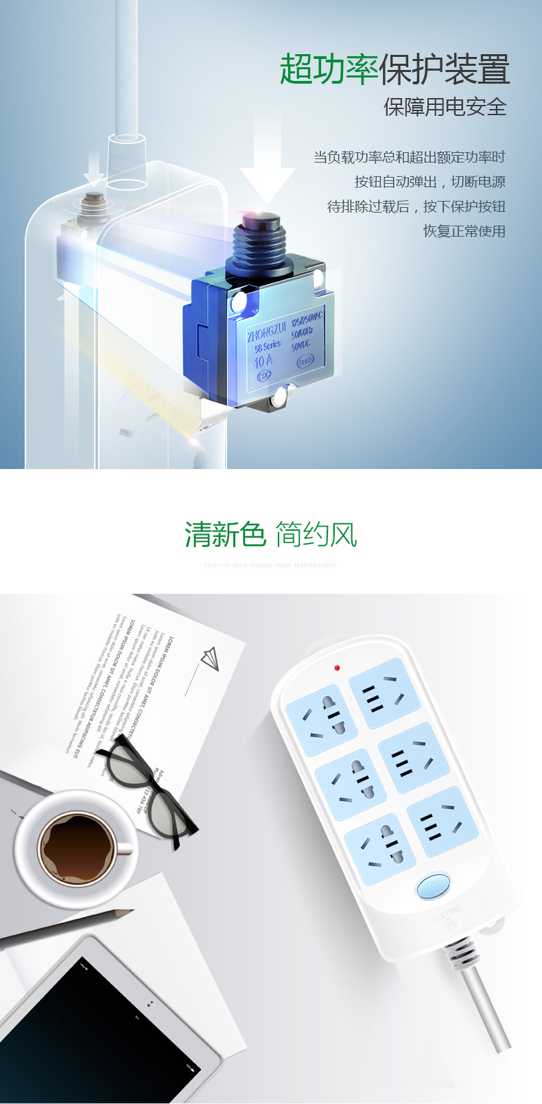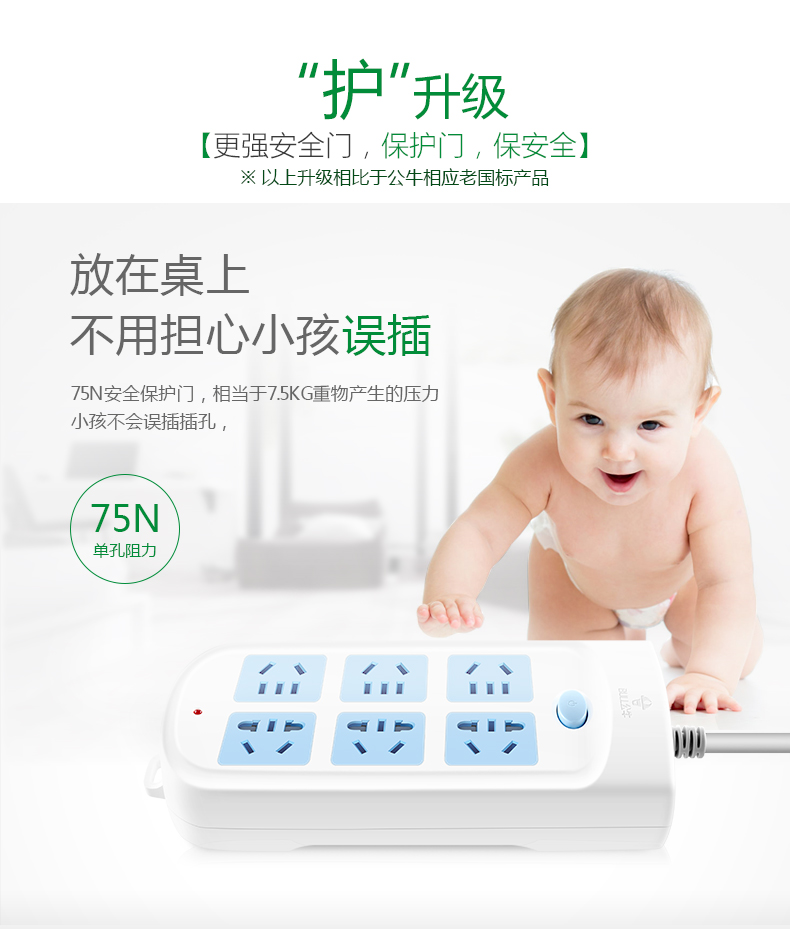 公牛GN-603(新国标)超功率保护电源插线板 3M吸
