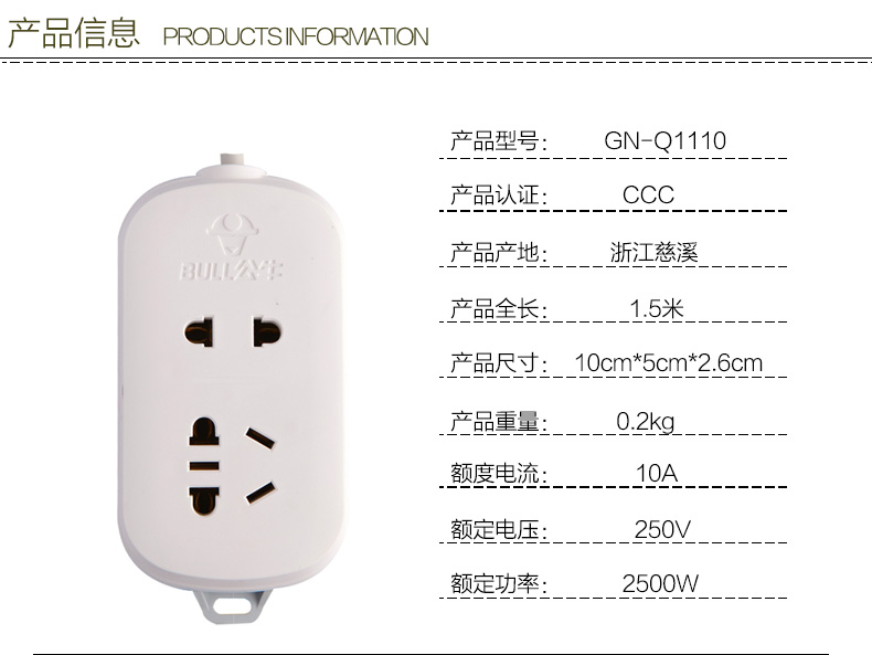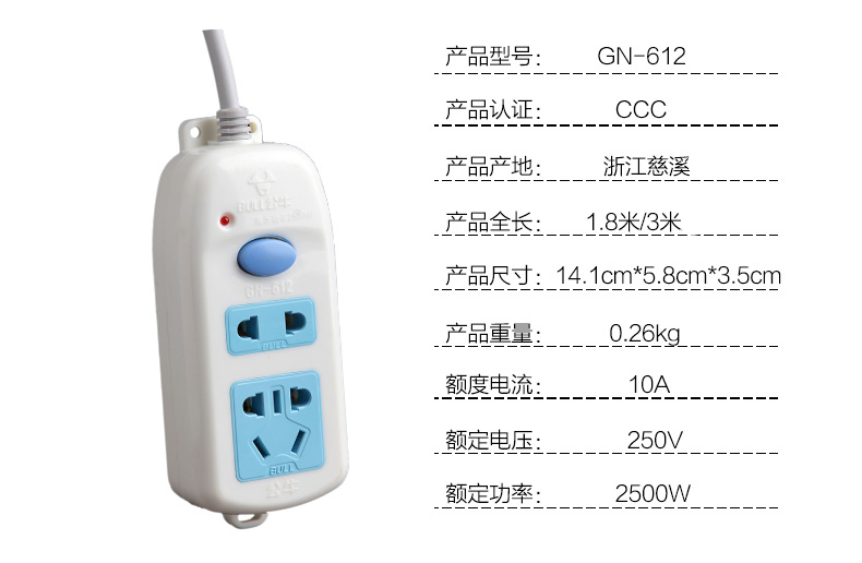 公牛GN-612电源插线板 1.8M袋