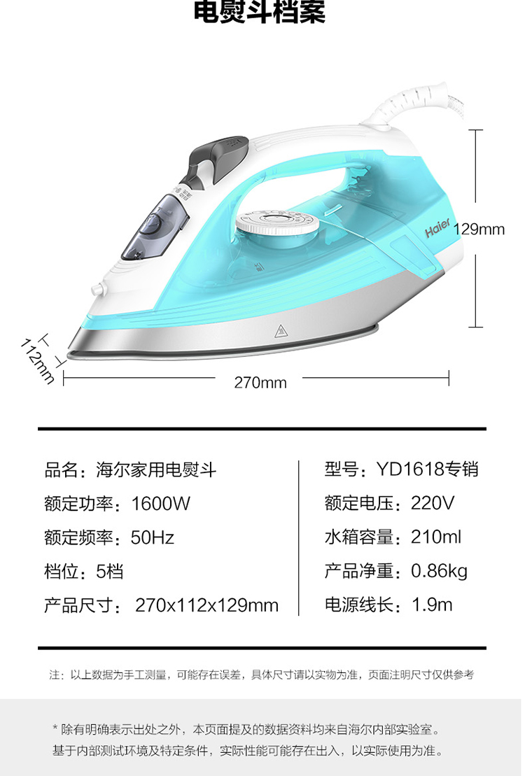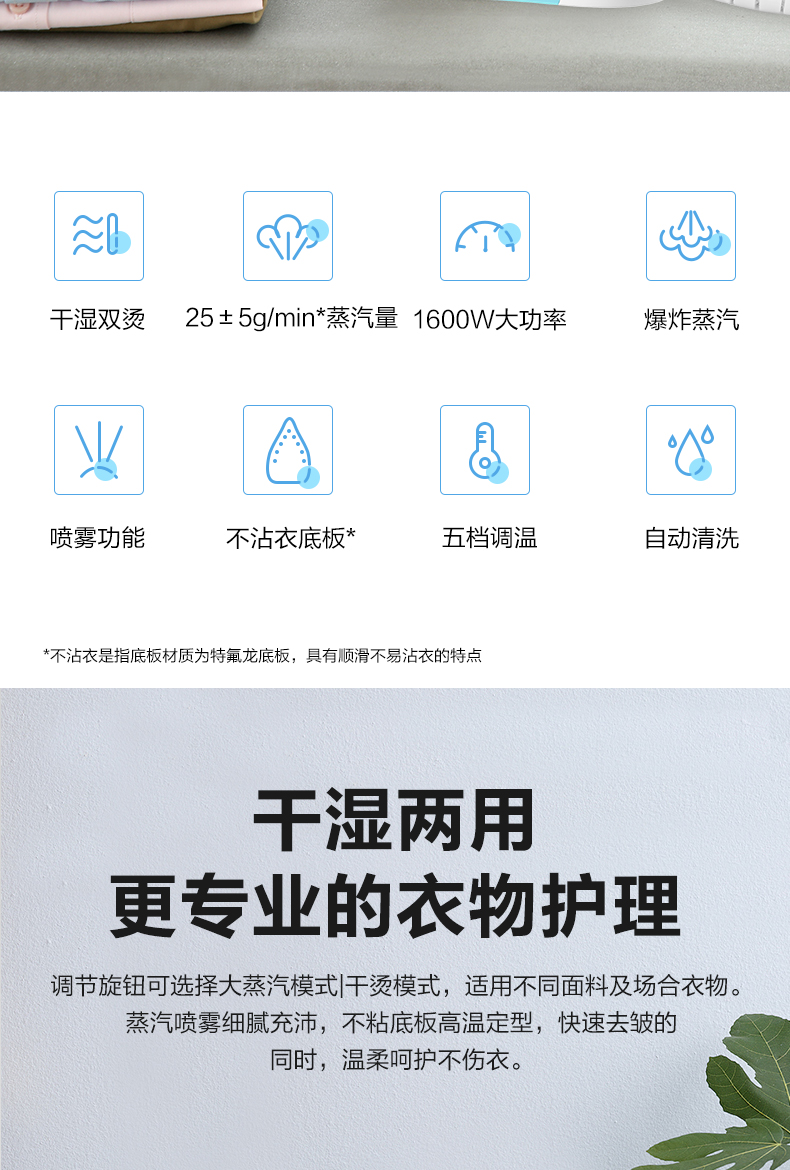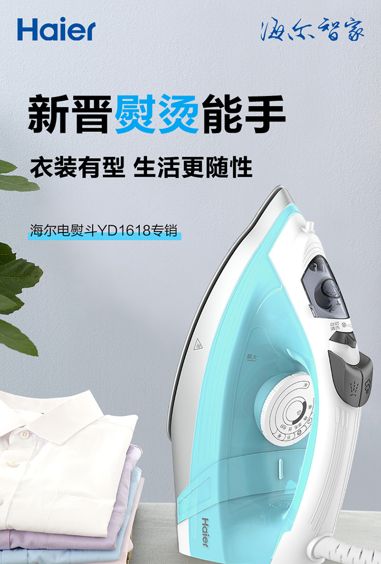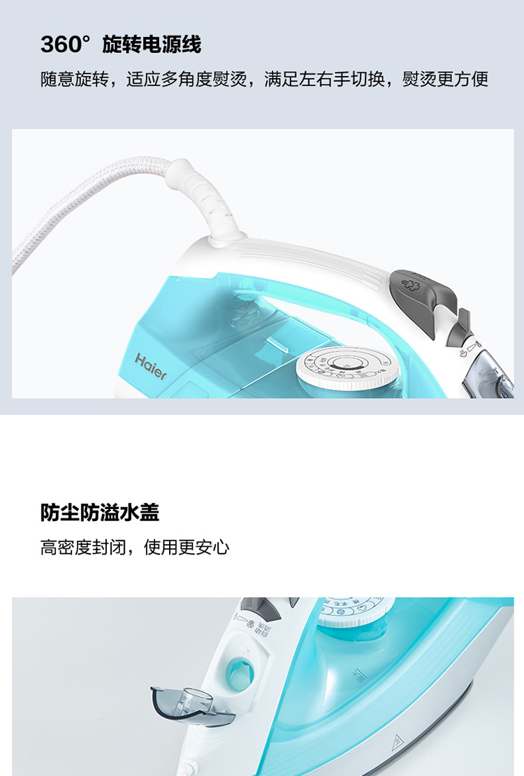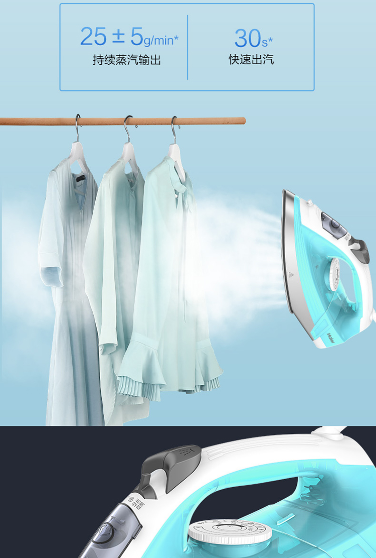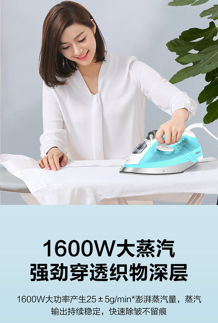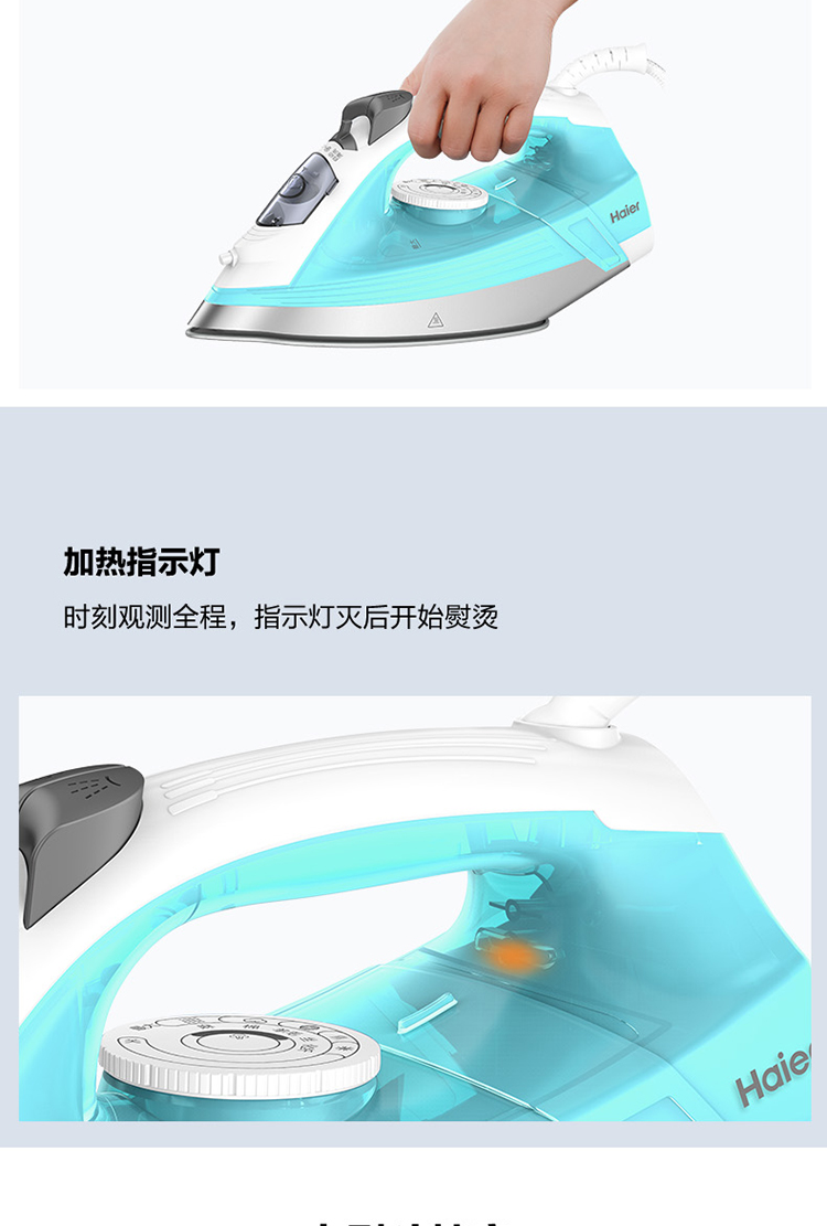 海尔(Haier)电熨斗自动清洗熨斗家用蒸汽挂烫机手持烫斗小型熨烫机干湿双烫 一年质保