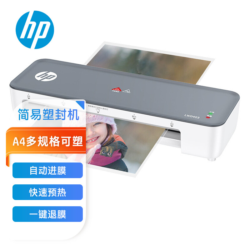 HP惠普 A4智能便捷塑封机 照片文件过塑机 简约时尚过塑机覆膜机 小型家用办公过胶机LW0403