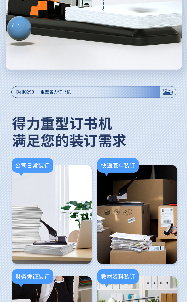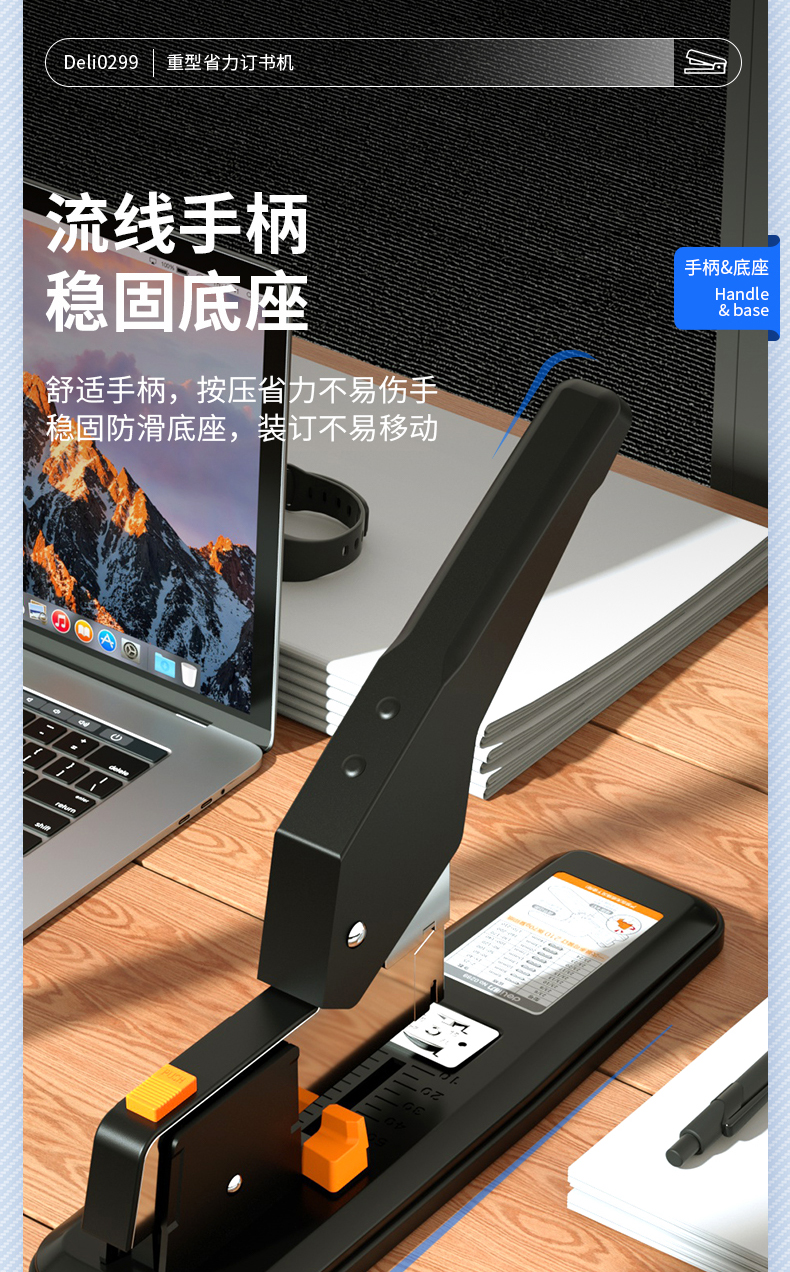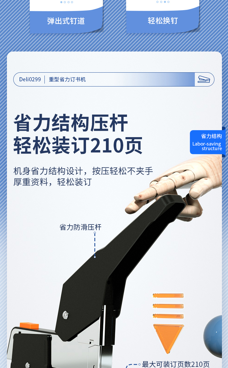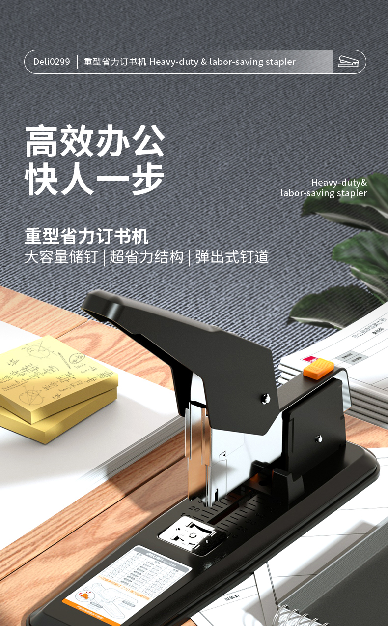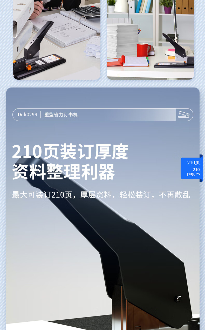 得力(deli)210页简约重型订书机/订书器 弹出式结构 黑色0299