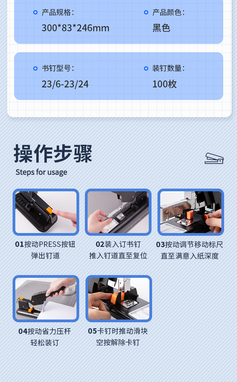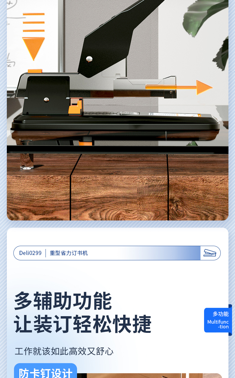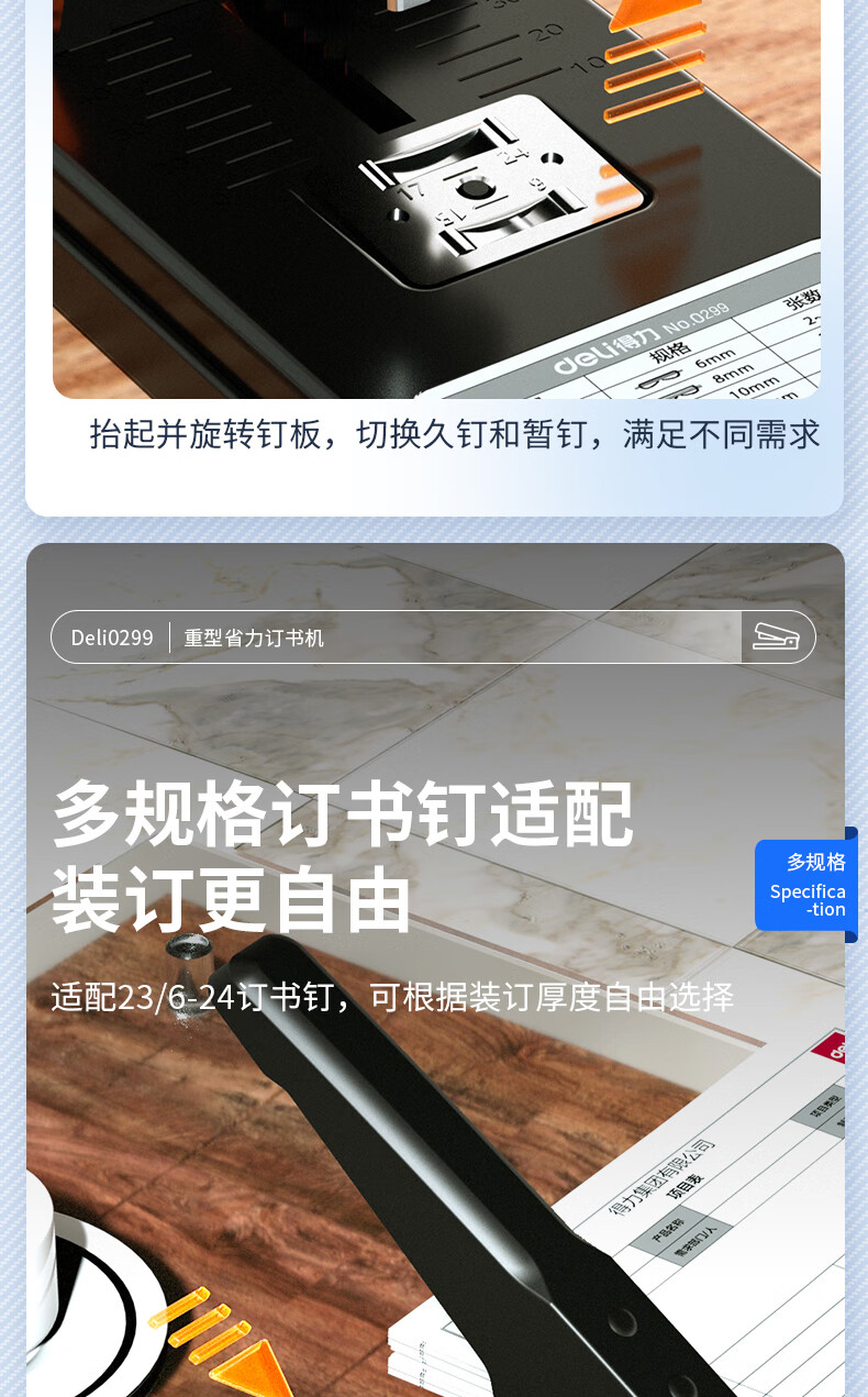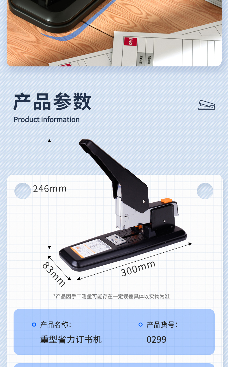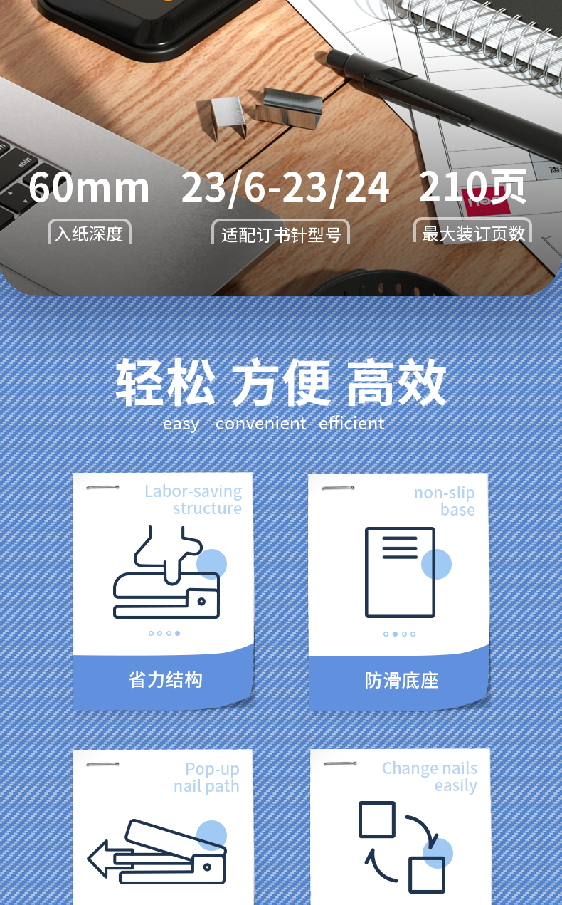 得力(deli)210页简约重型订书机/订书器 弹出式结构 黑色0299