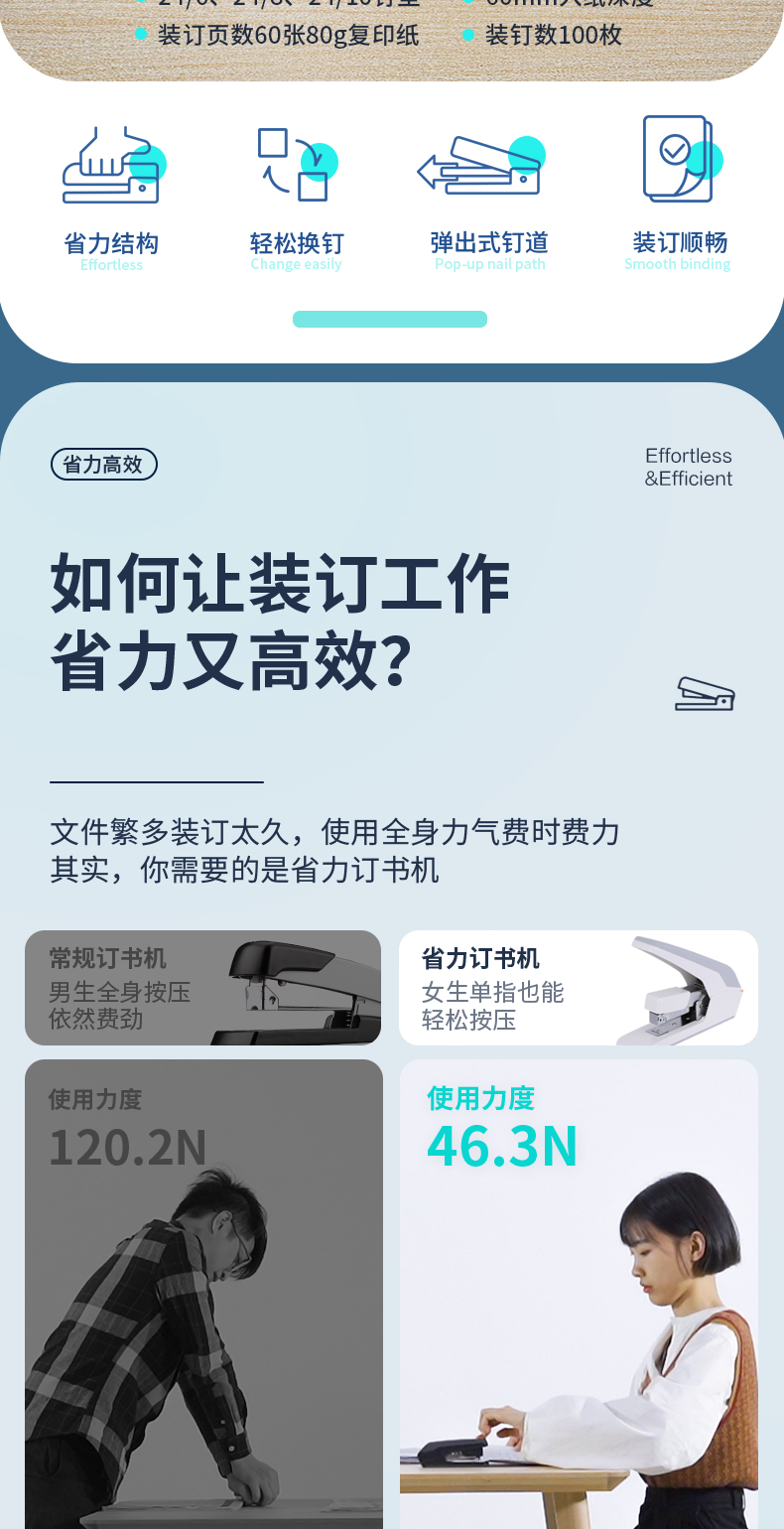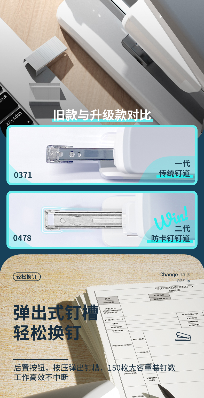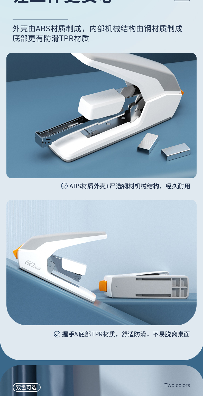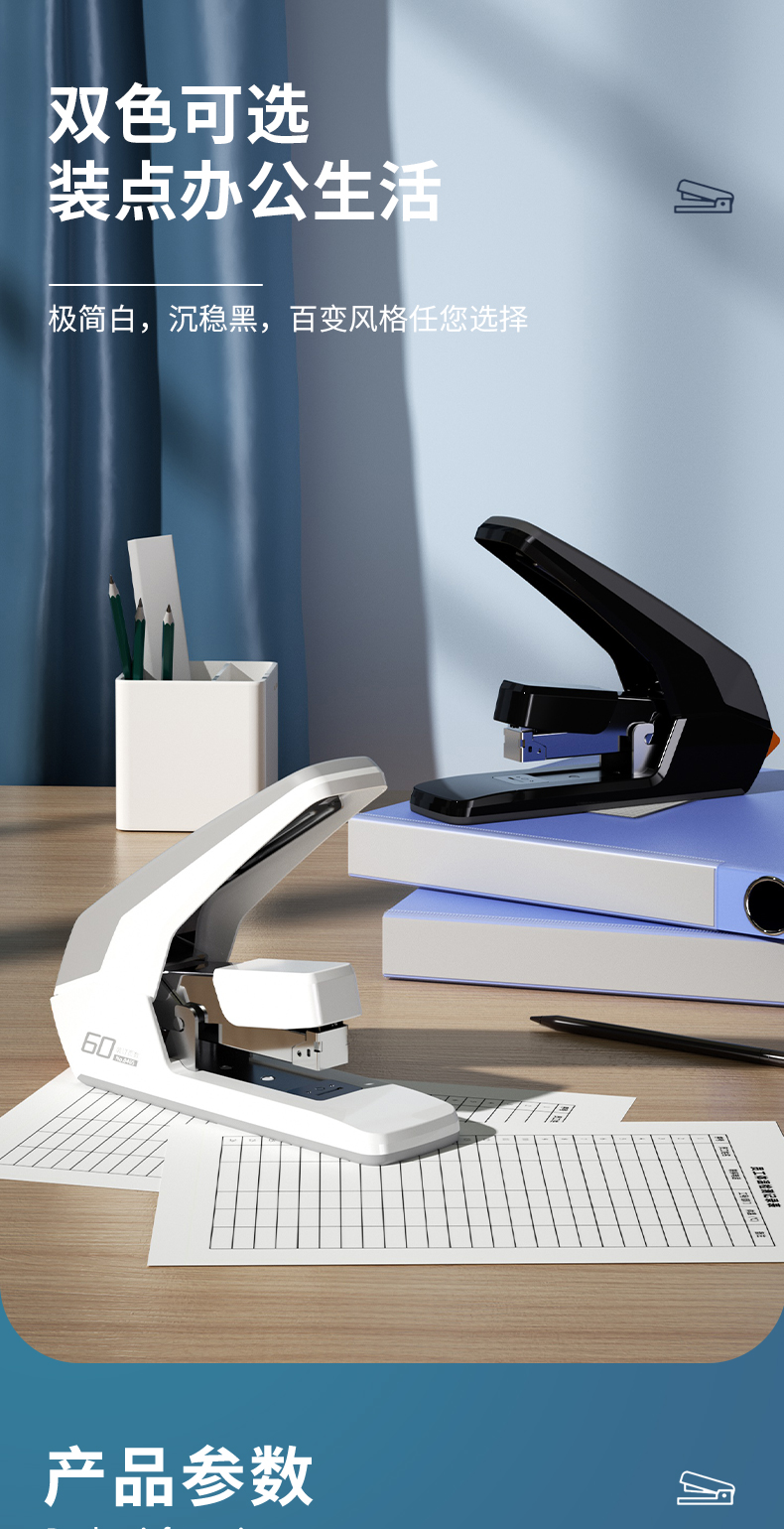 得力(deli)60页省力厚层订书机/订书器 适配23/6~23/10订书钉 白色0465
