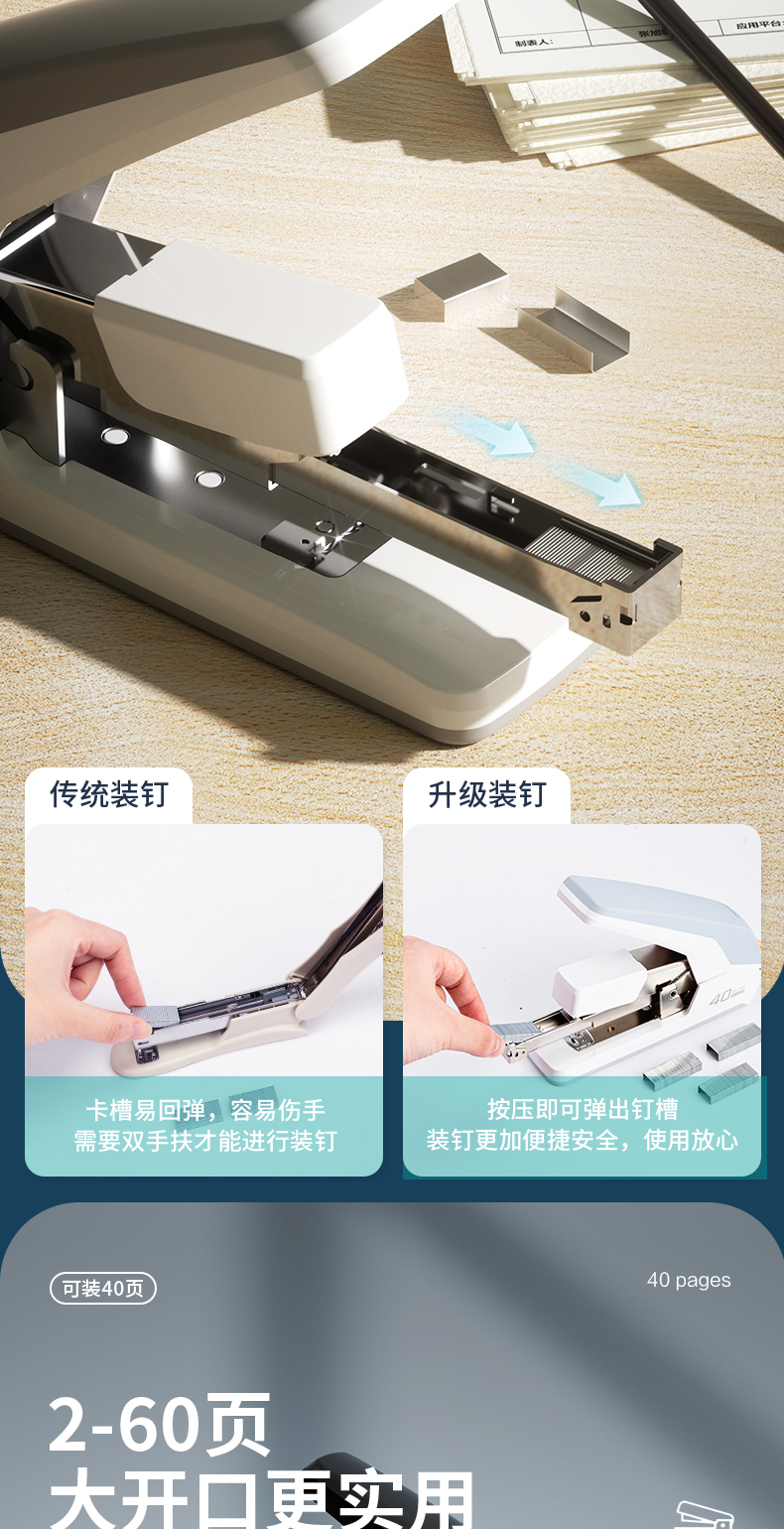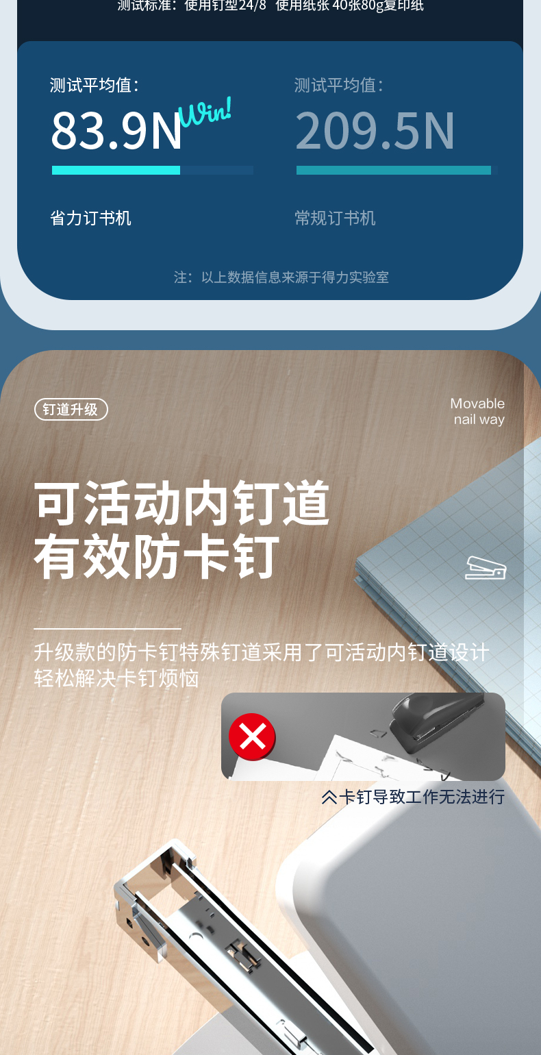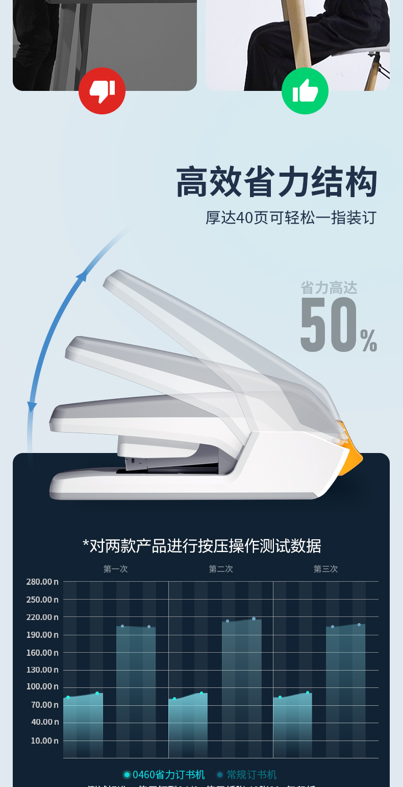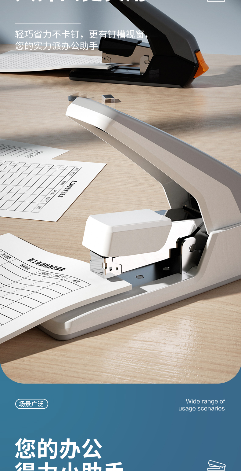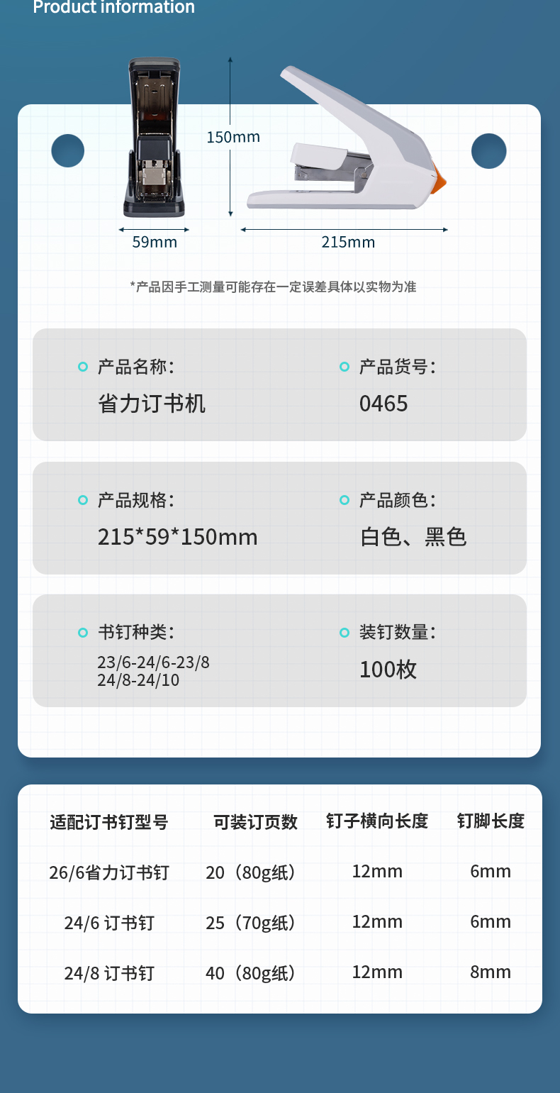 得力(deli)60页省力厚层订书机/订书器 适配23/6~23/10订书钉 白色0465
