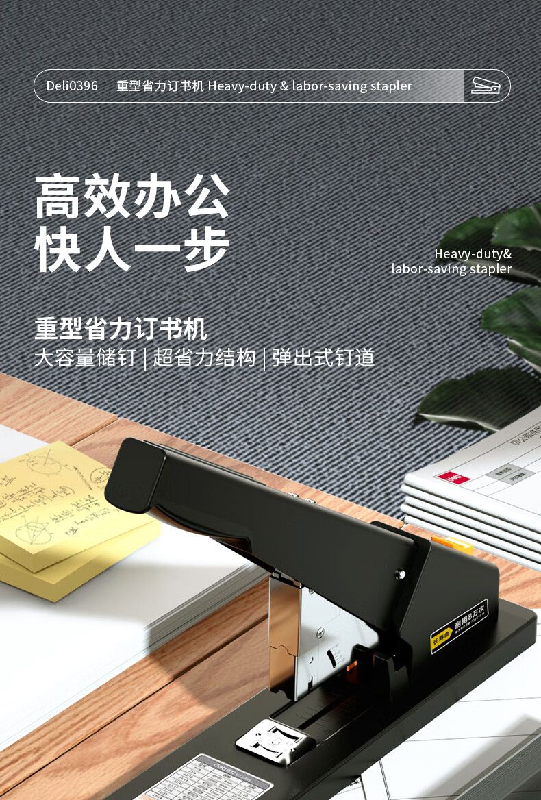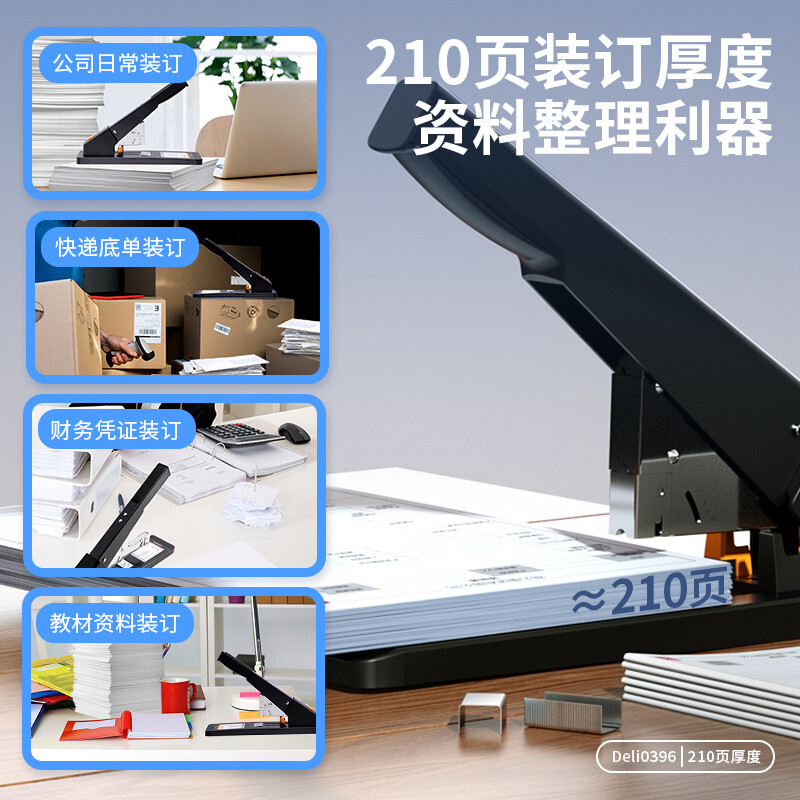 得力(deli)210页重型订书机/订书器 适配23/6~23/23订书钉 办公用品 黑色0396