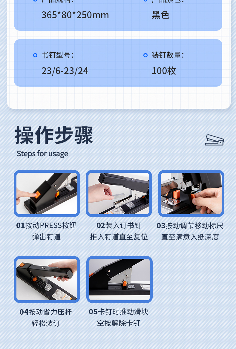 210页宽底盘重型订书机