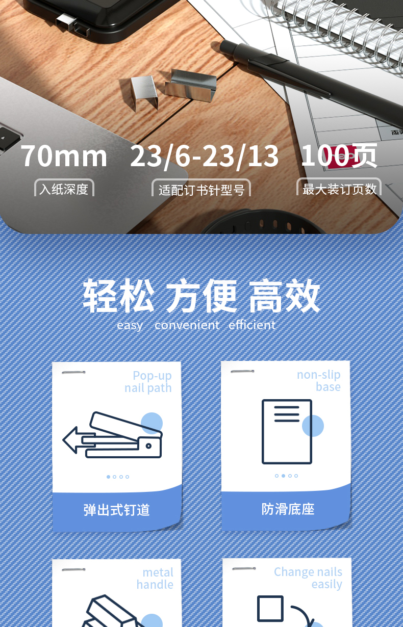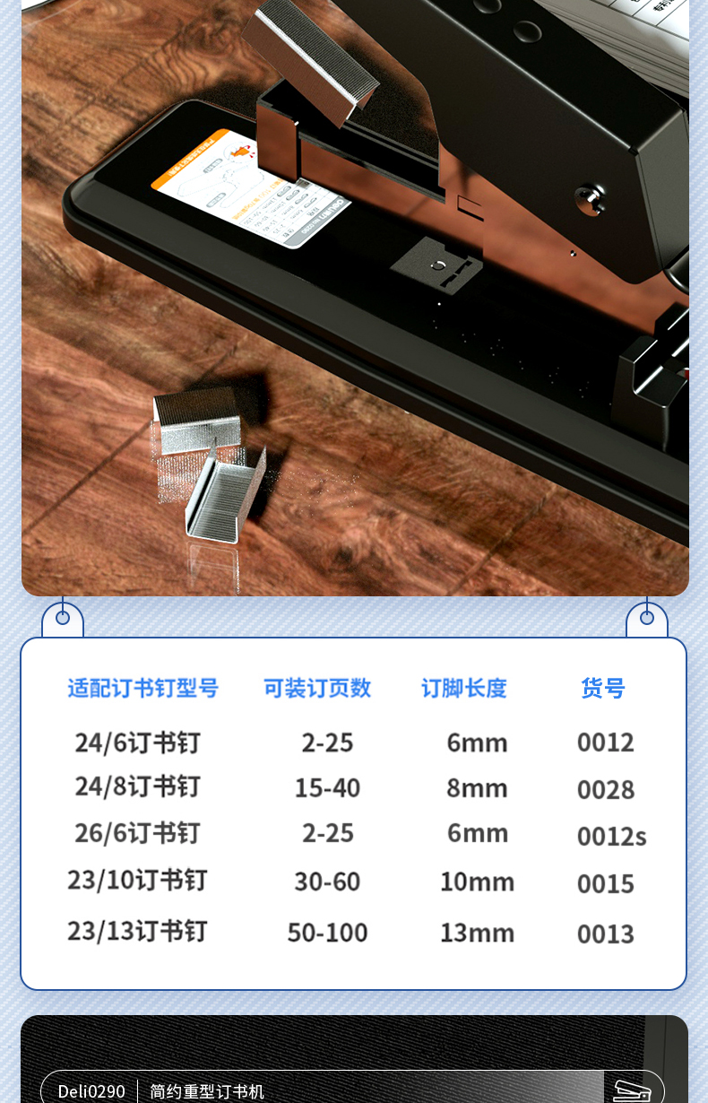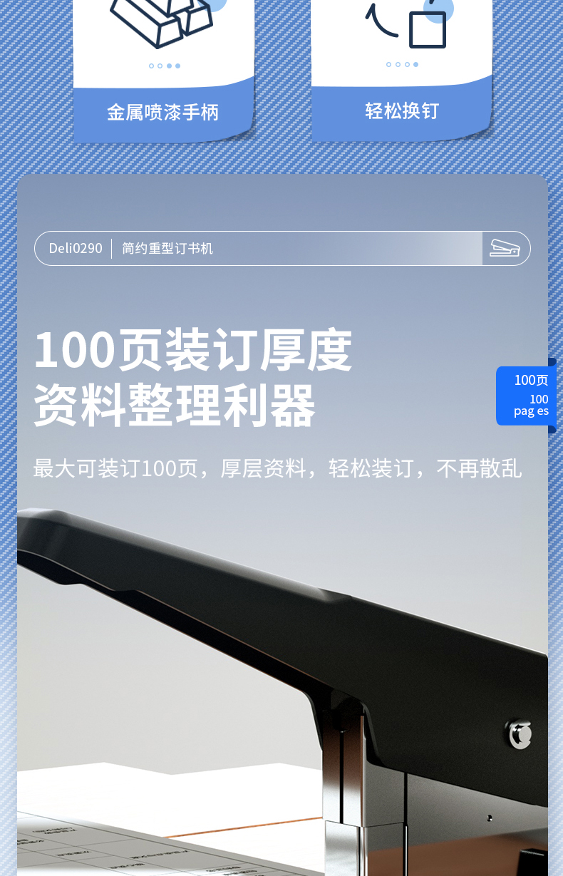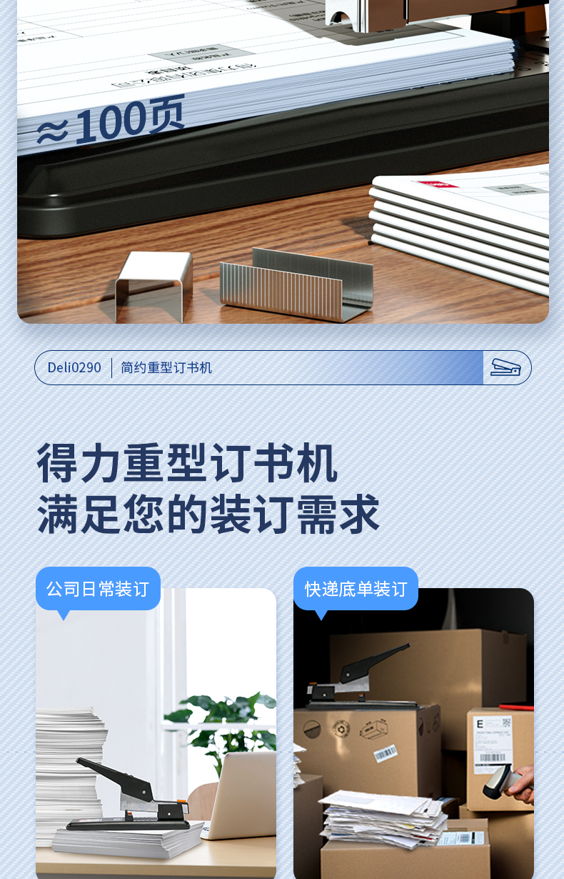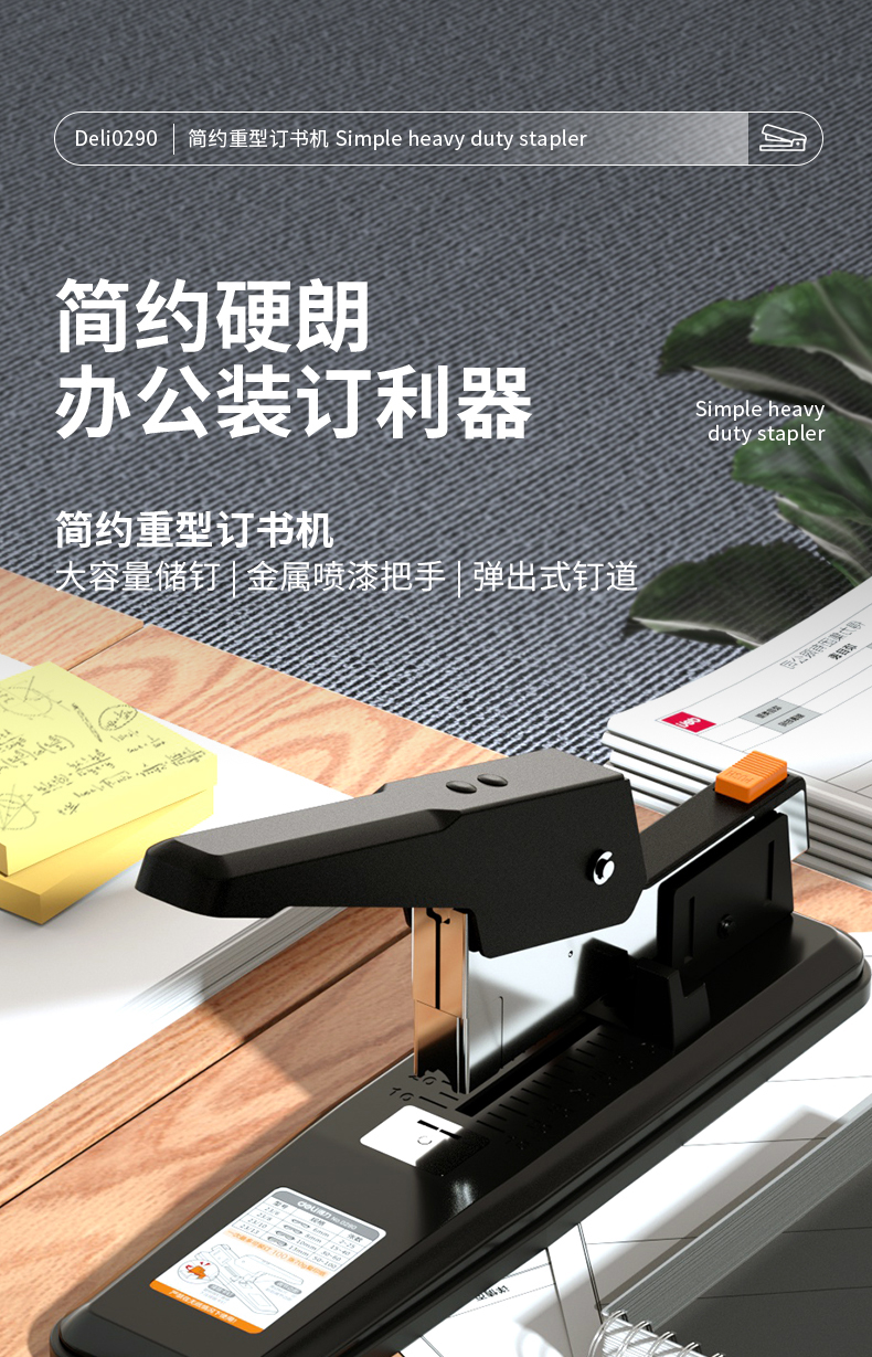 得力(deli)100页简约重型订书机/订书器 弹出式结构 黑色0290