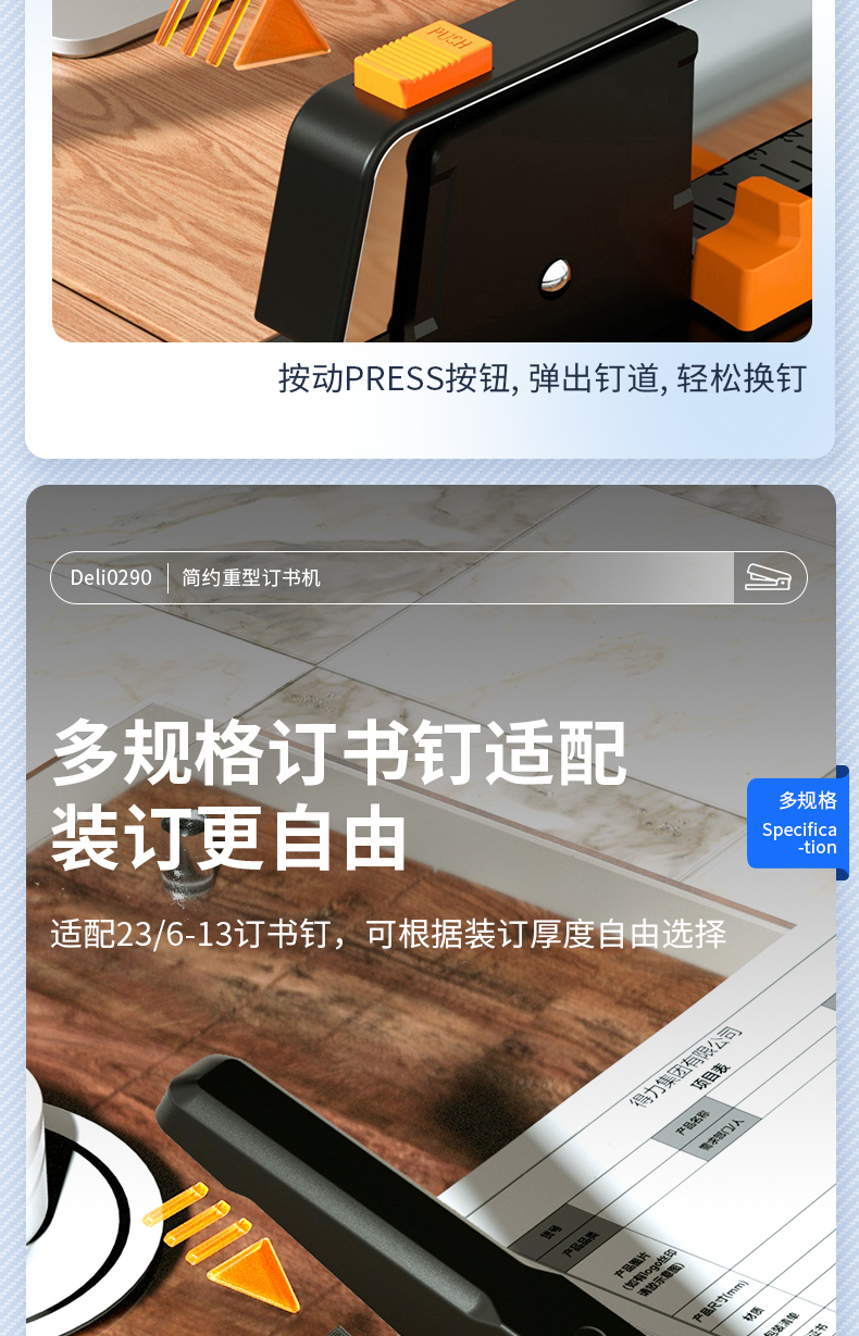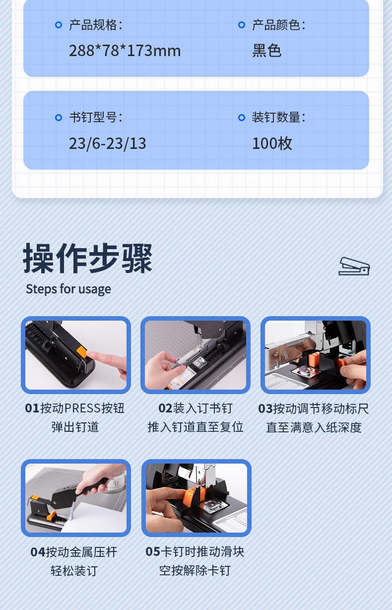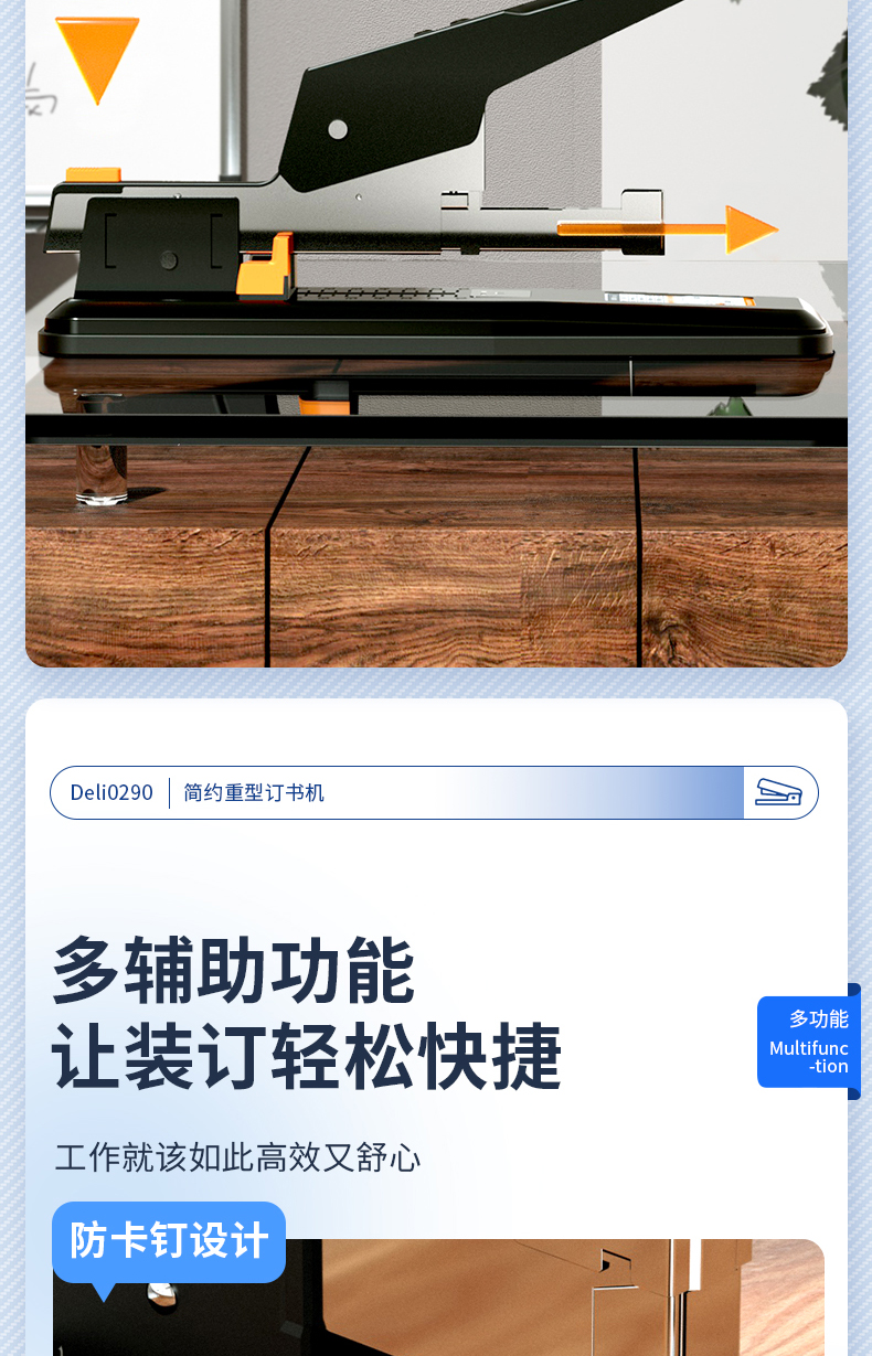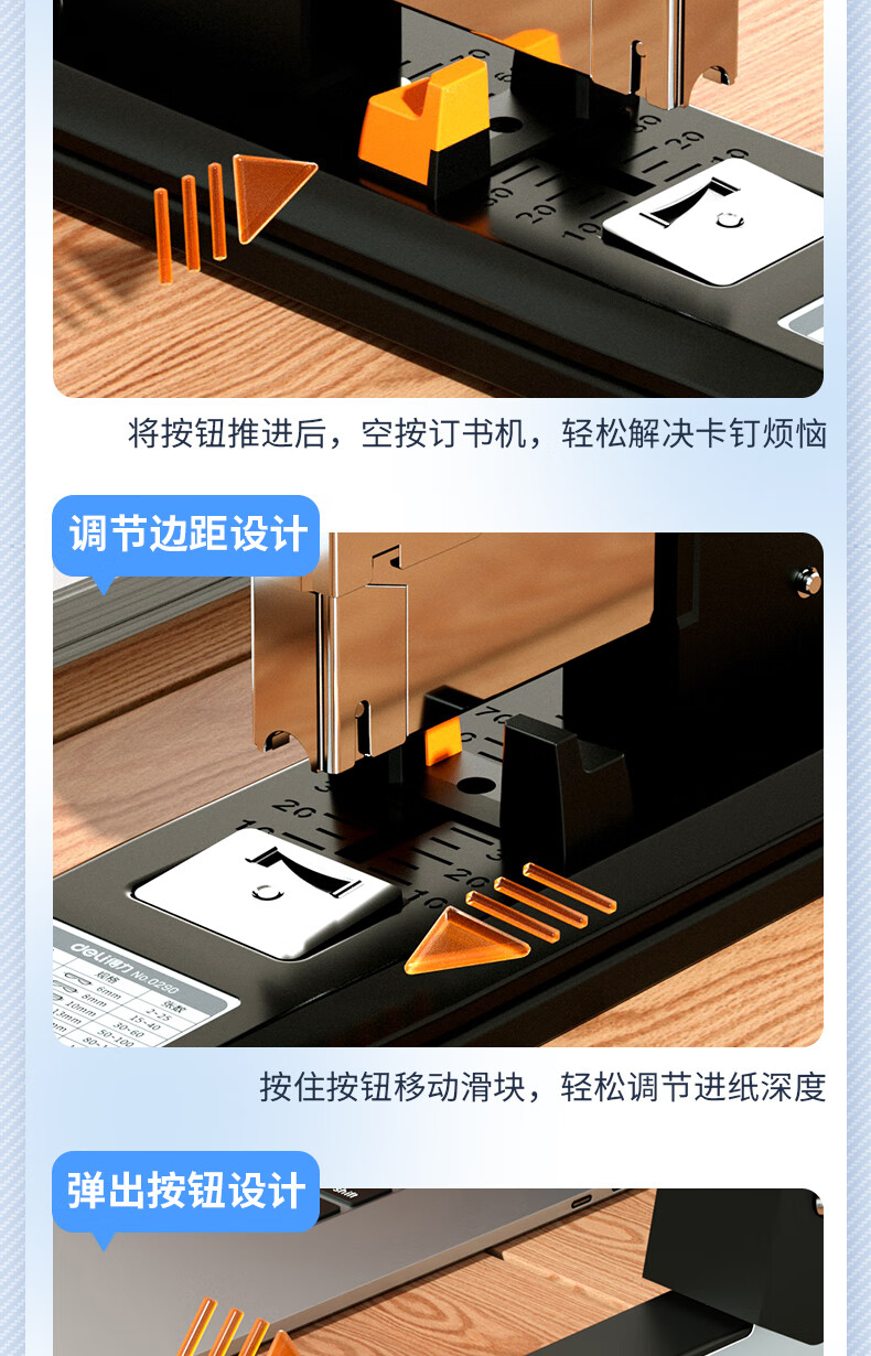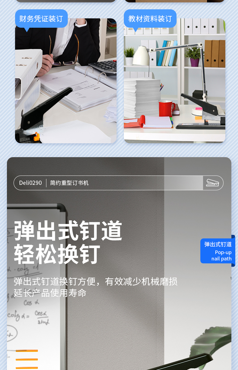 得力(deli)100页简约重型订书机/订书器 弹出式结构 黑色0290