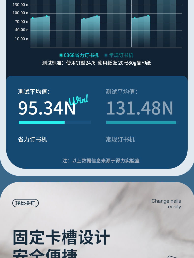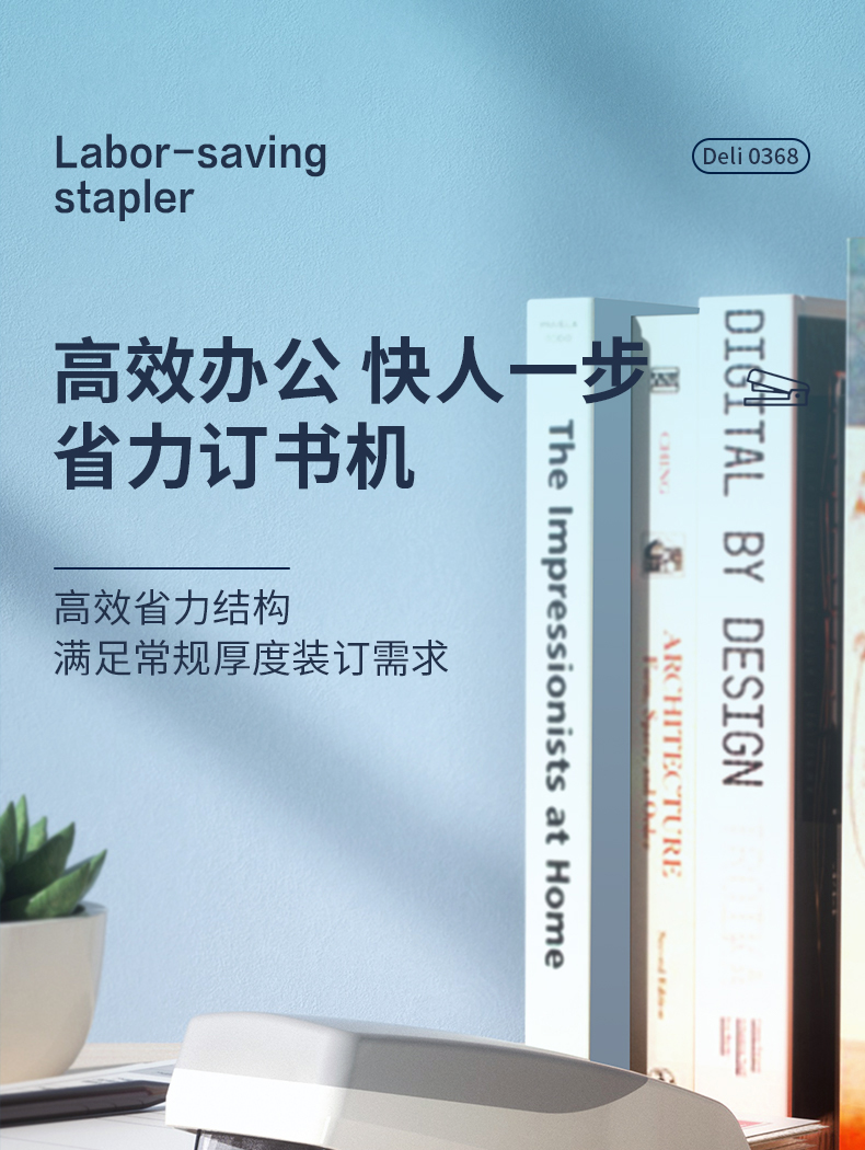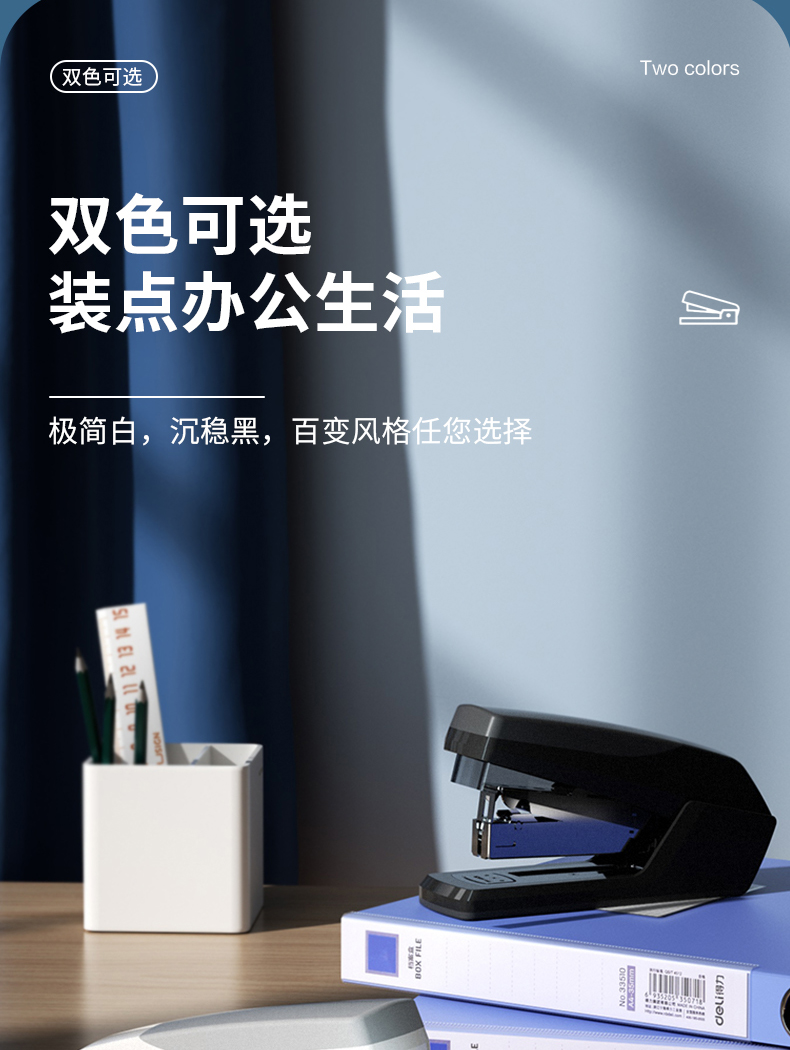 得力(deli)省力型订书机/订书器 适配24/6(12#)及26/6订书钉 办公用品 白色0368