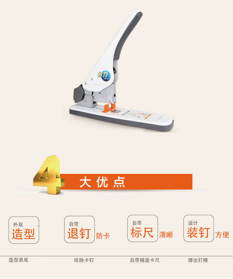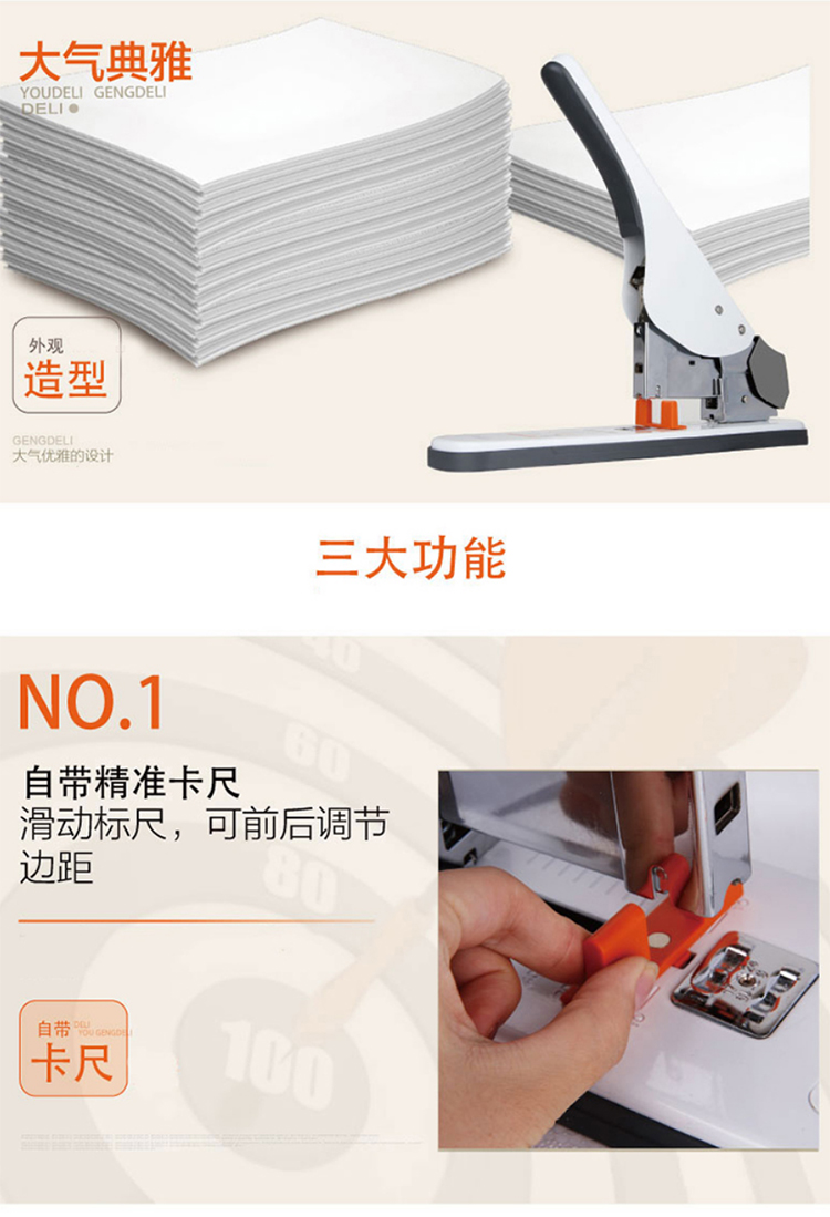 得力(deli)210页省力型重型订书机/订书器 适配23/6~23/23订书钉 带滑动标尺 黑色