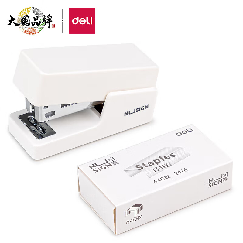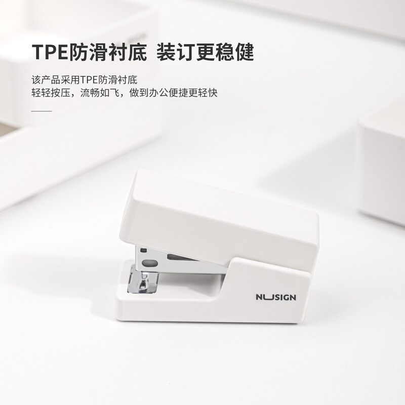 得力纽赛迷你小号订书机 学生办公轻巧便携手握式省力定书装订机 白NS083附订书钉
