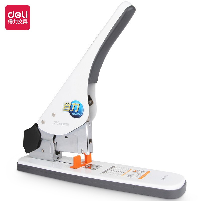 得力(deli)210页带滑动标尺重型订书机/订书器 适配23/6~23/23订书钉 白色