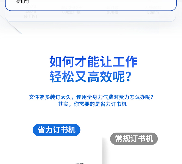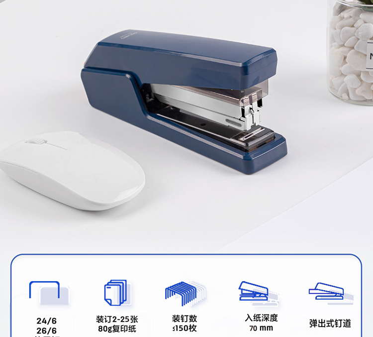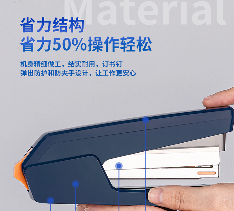 得力(deli)平钉省力型订书机/订书器 单指按压平钉包角 蓝色0433