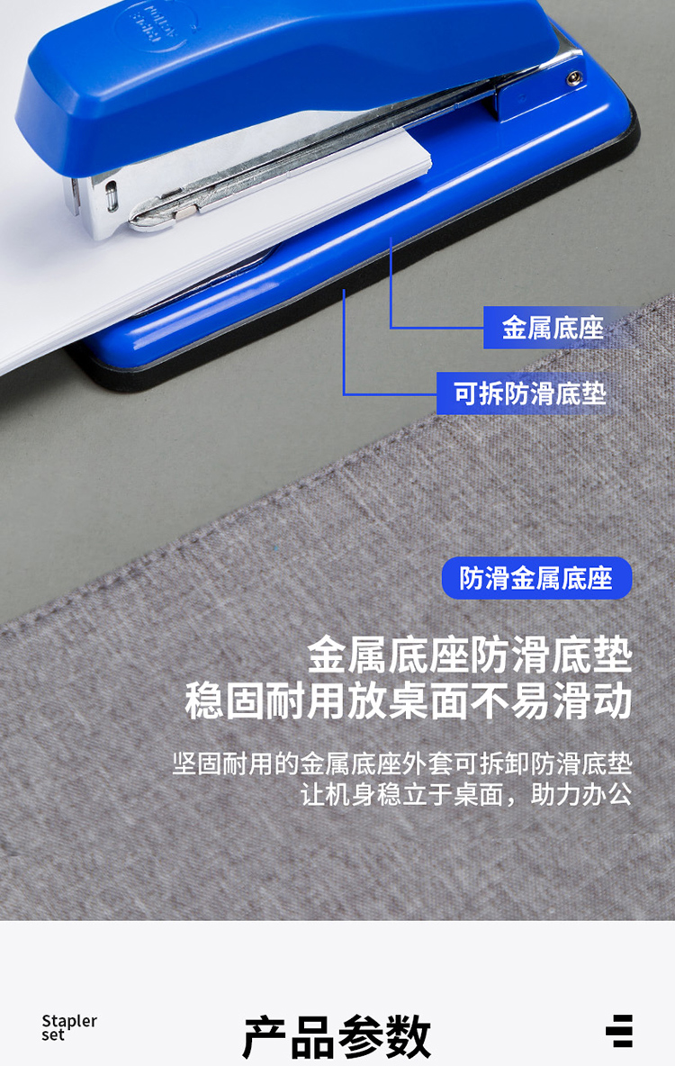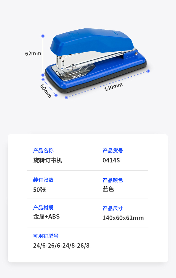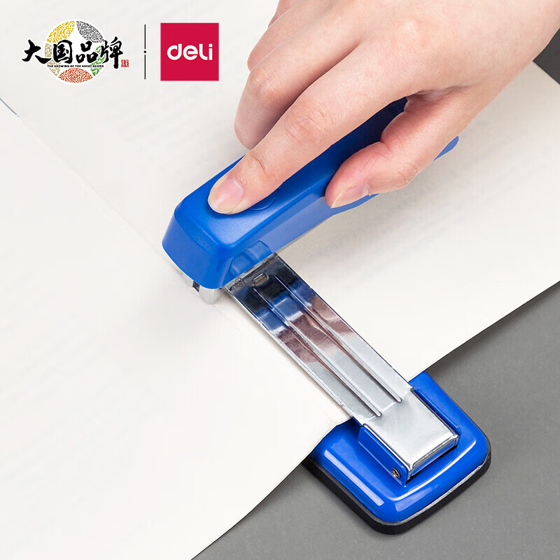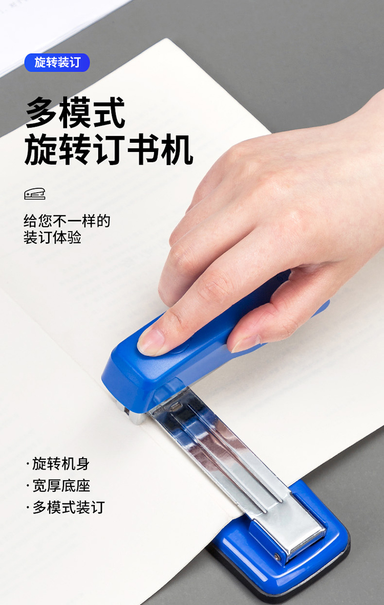 得力(deli)12#50页旋转式订书机 厚层订书器 中缝装订 临时装订可拆 办公用品 蓝色0414S