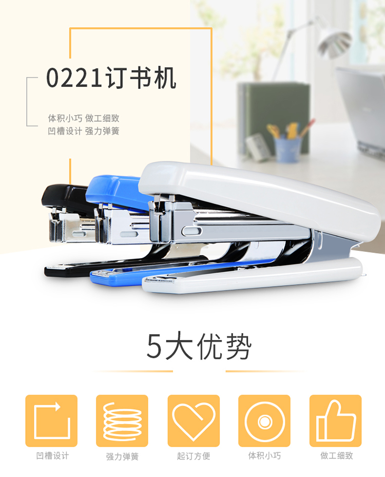 得力0221订书机 带起钉器(适用10#钉)