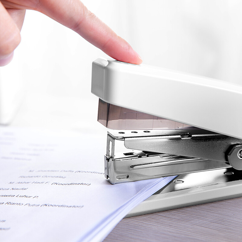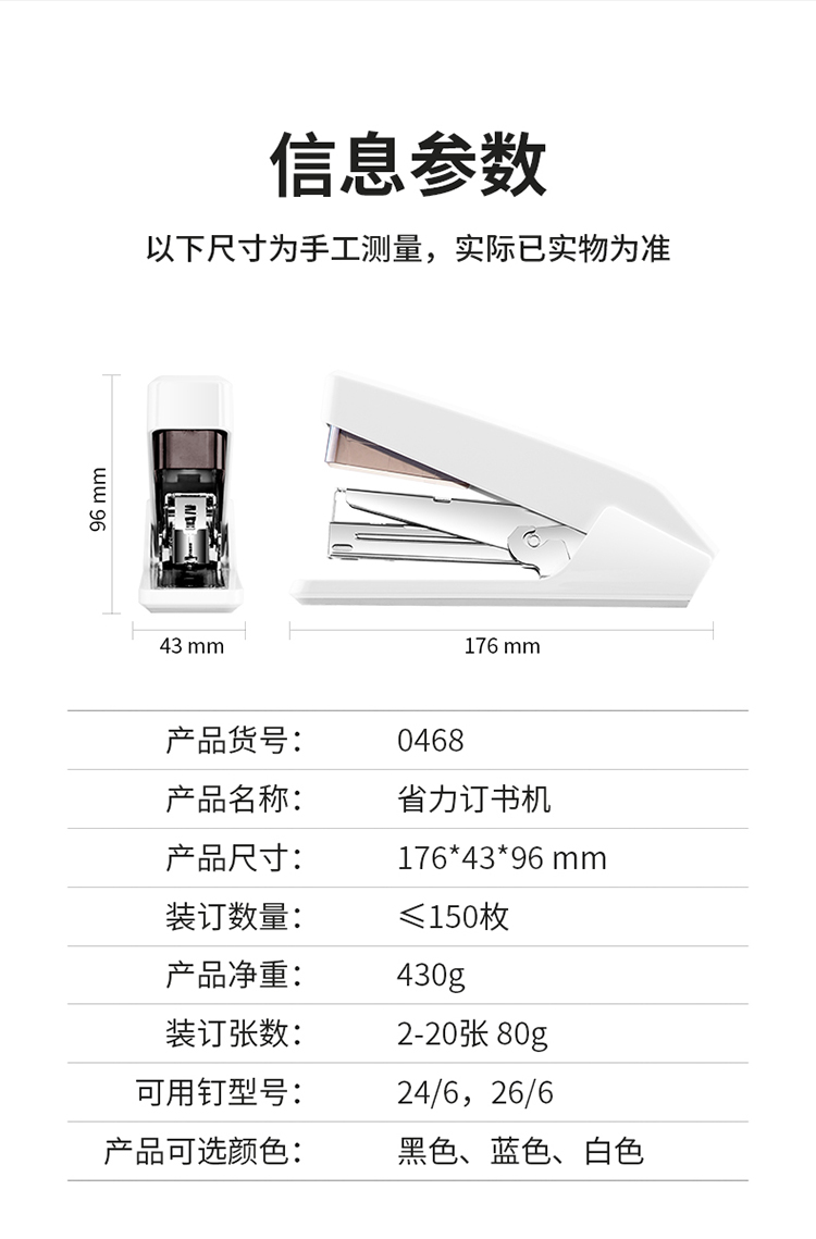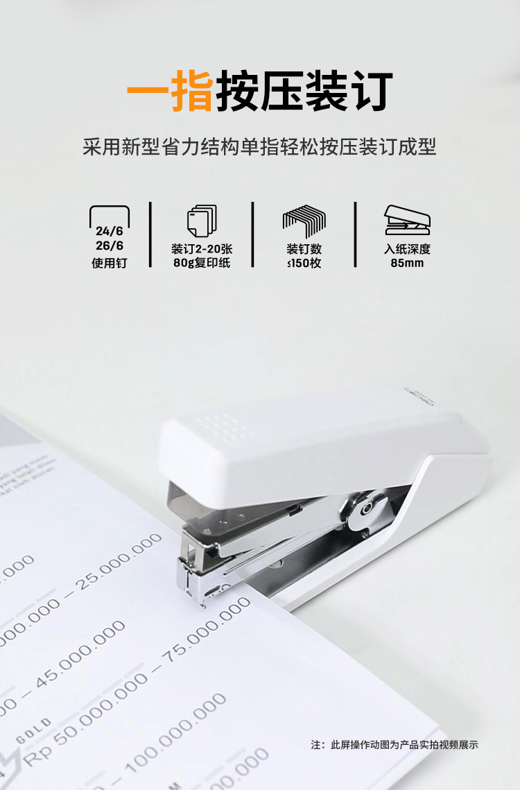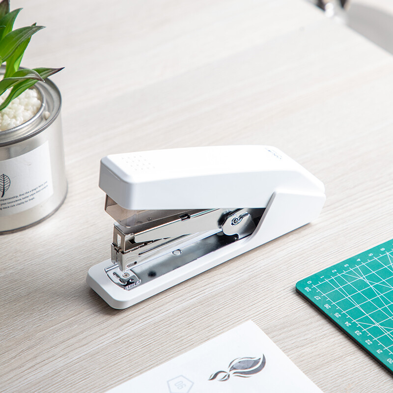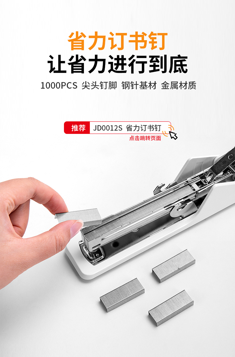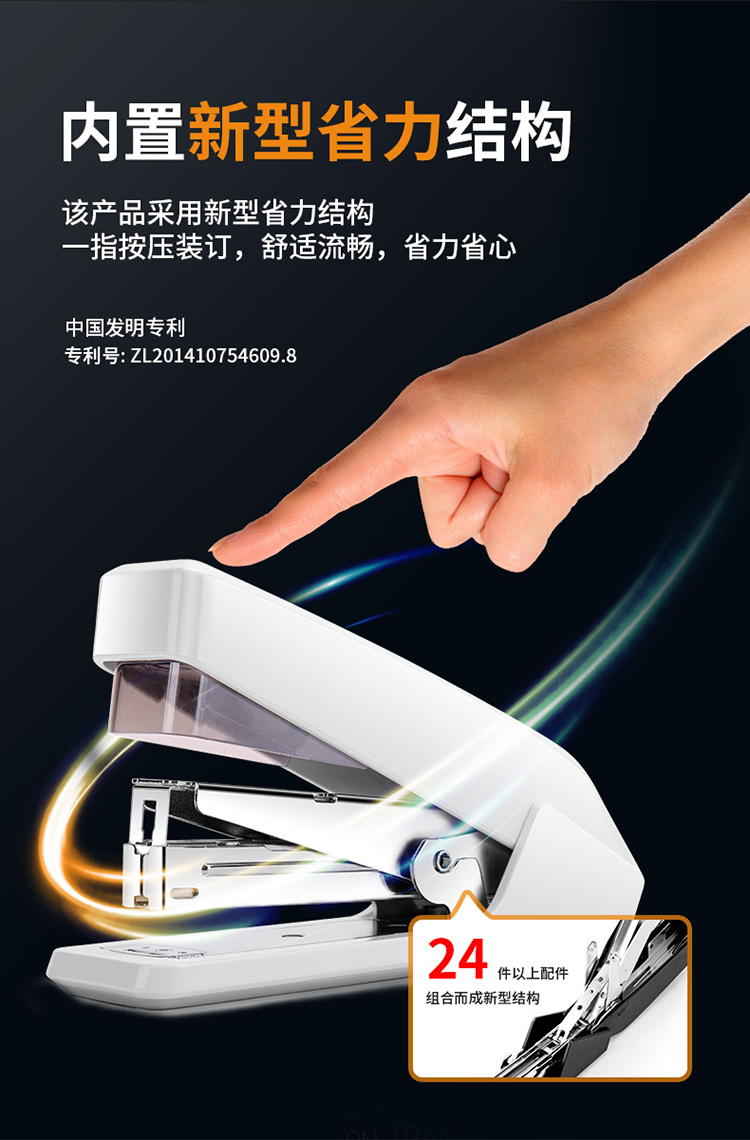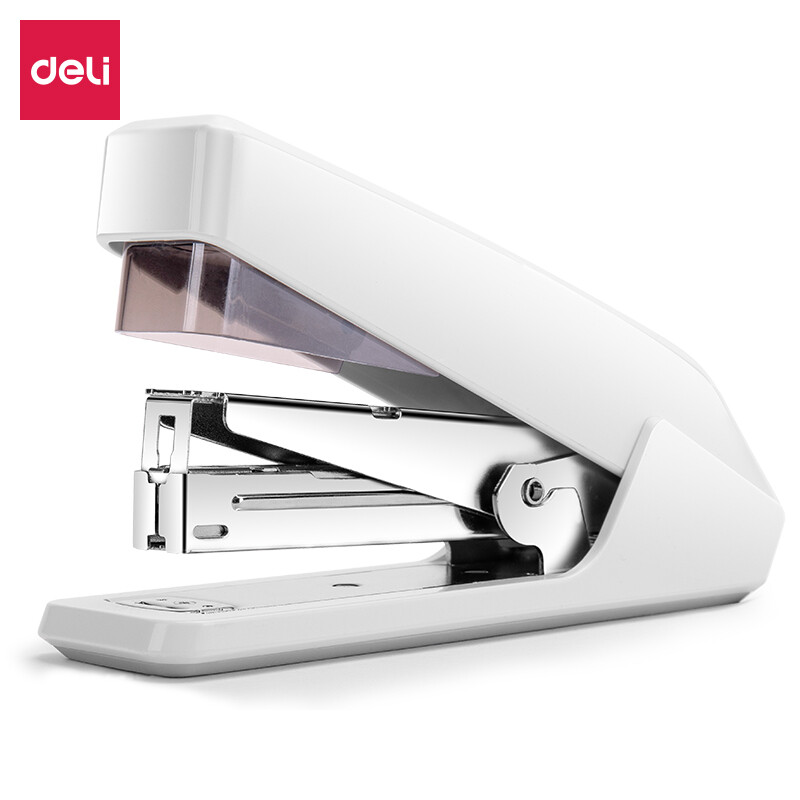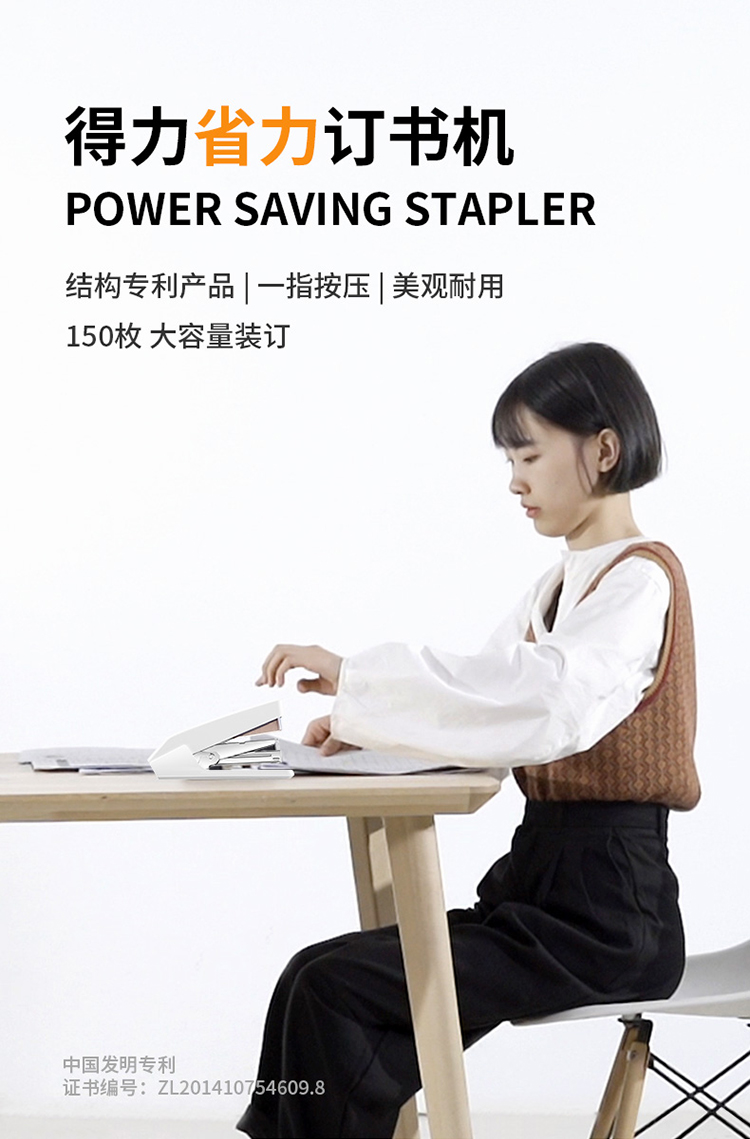 得力(deli)省力结构专利订书机/订书器 适配12#订书钉 可装150枚钉 白色