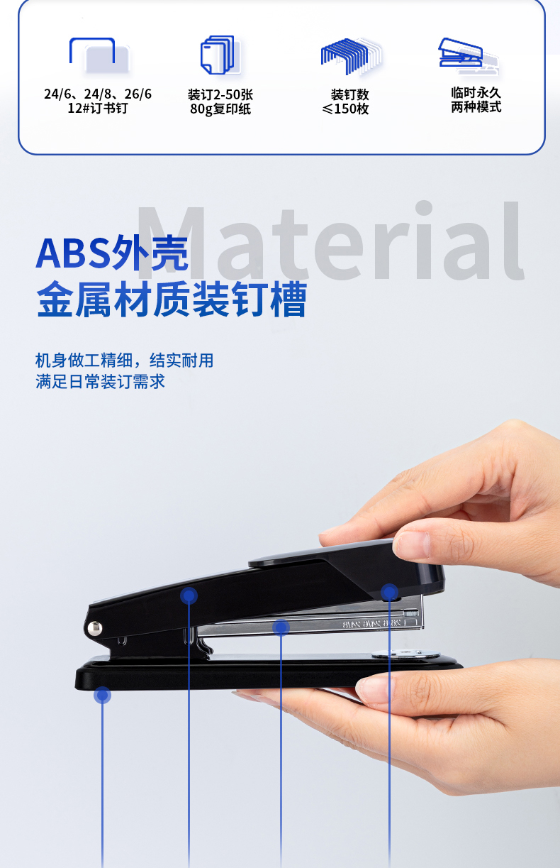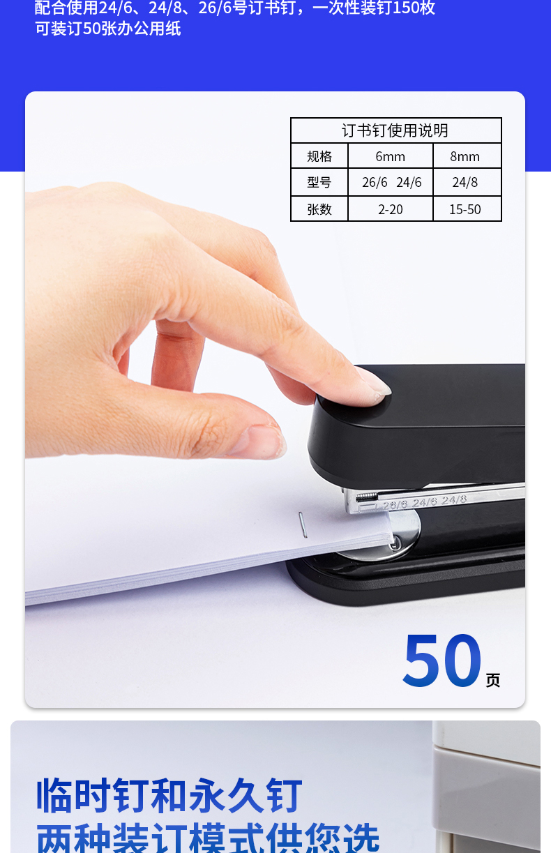 得力(deli)40页金属材质订书机/订书器 适配12#钉 黑色0417