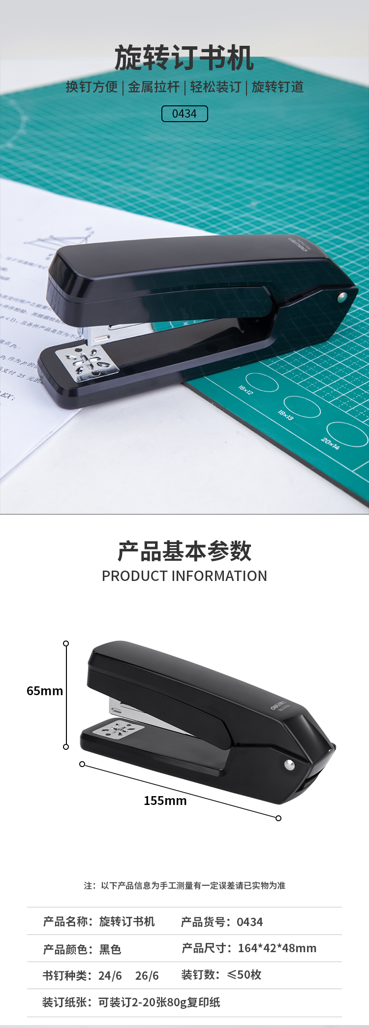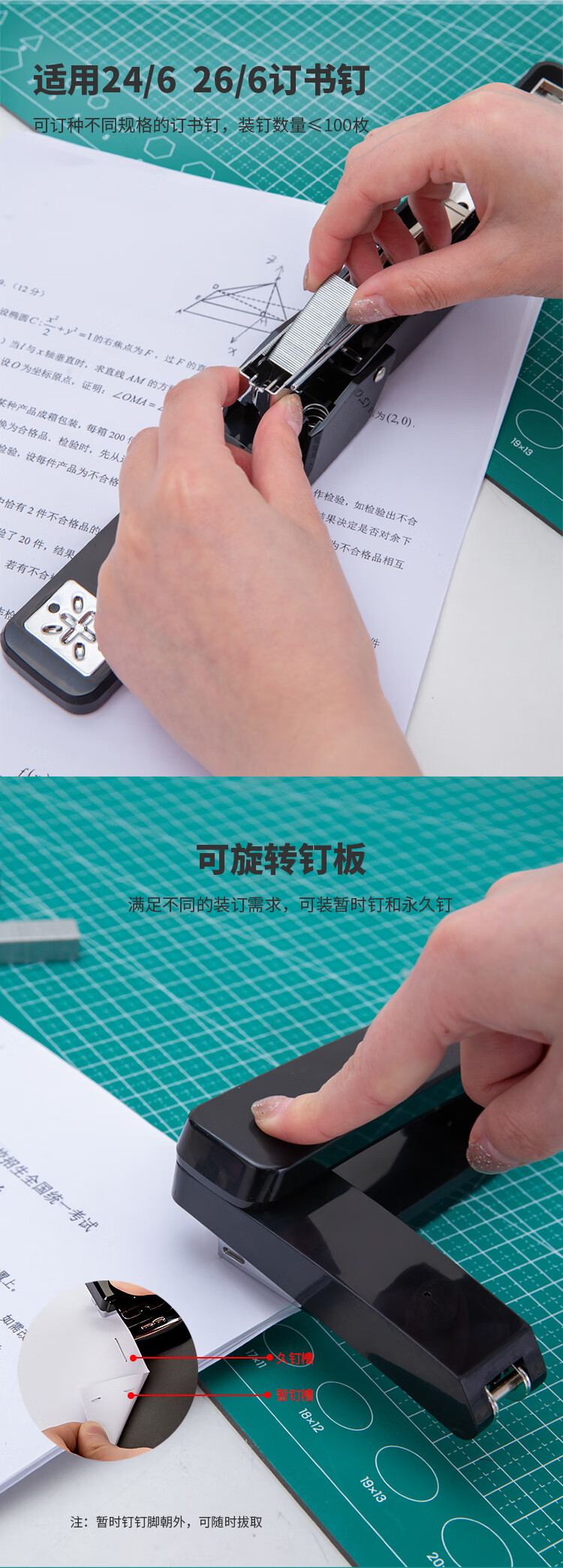 得力(deli)12#旋转订书机 中缝装订订书器 临时装订 黑色0434