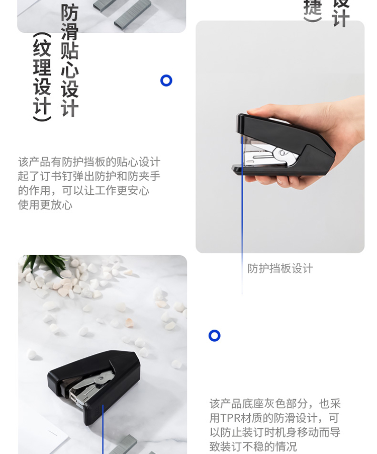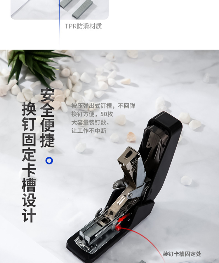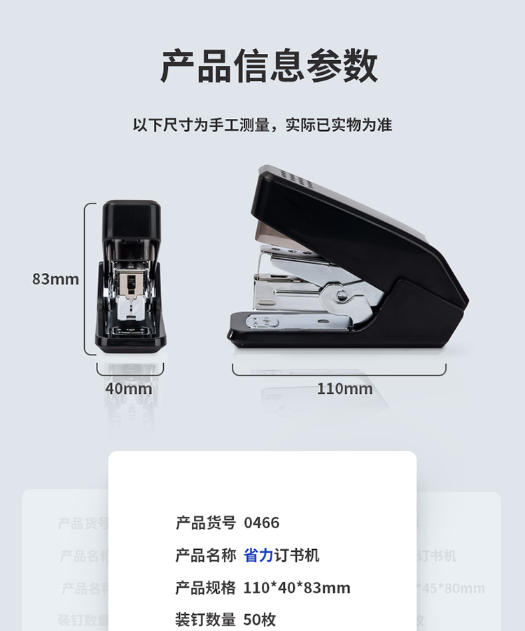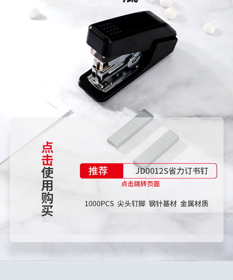 得力(deli)单指按压省力订书机/订书器 适配12#订书钉 可装50枚钉 黑色0466